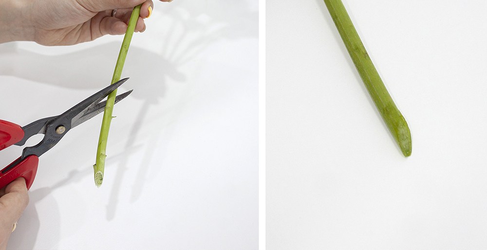 3. 줄기 끝을 사선으로 잘라 물에 꽂아주세요.