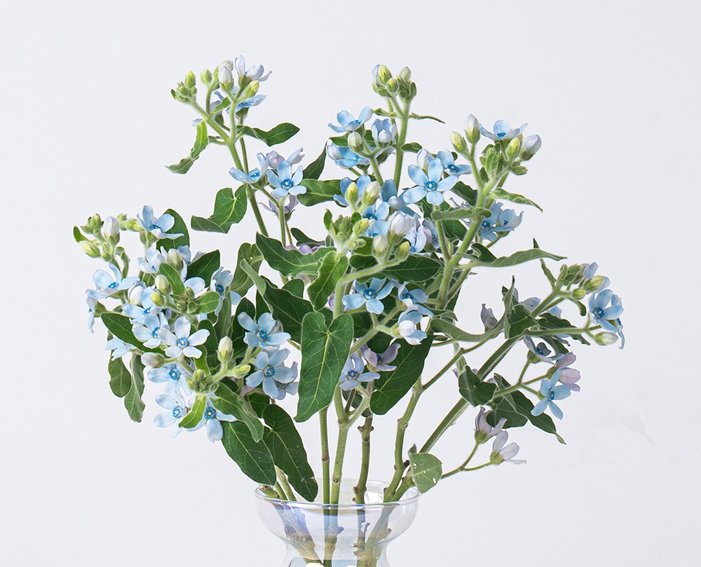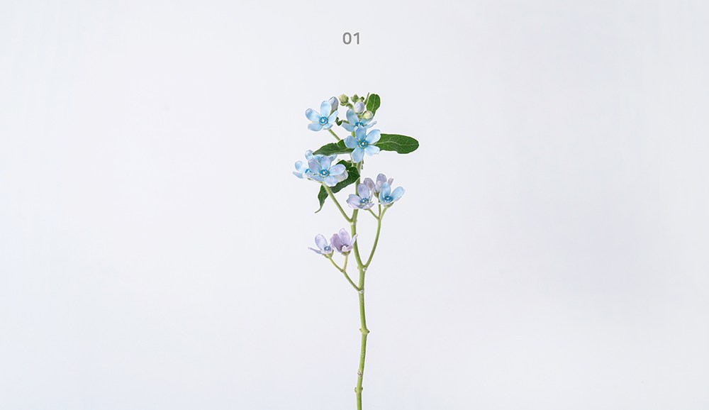 작은 꽃송이가 올망졸망 모여있는 꽃이에요. 은은하게 물든 신비로운 푸른빛이 매력적이죠. 동그란 꽃잎이 곧게 펼쳐져 단아하고 화사한 분위기를 선사한답니다. 화병에 꽂아 공간을 특별하게 만들어보세요.