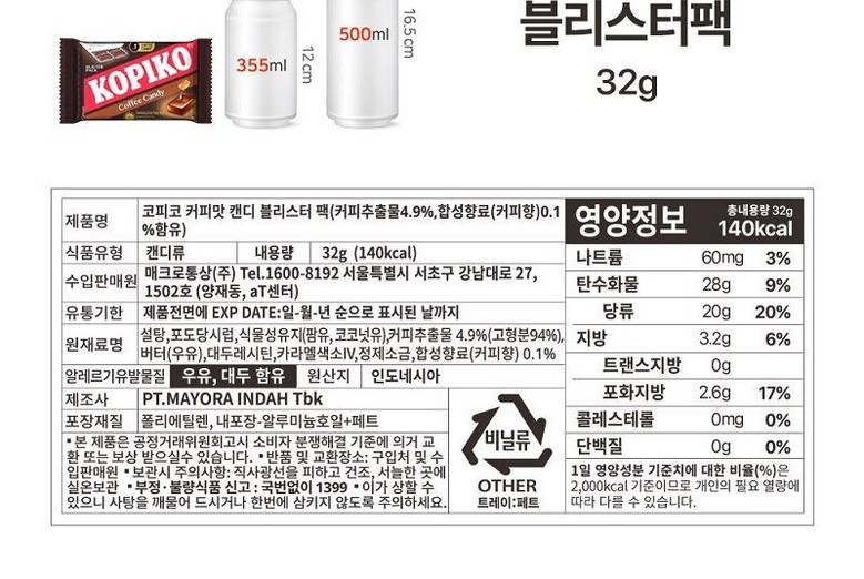 | 제품명 | 상품 상세페이지 참조 | 식품의 유형 | 상품 상세페이지 참조 |
