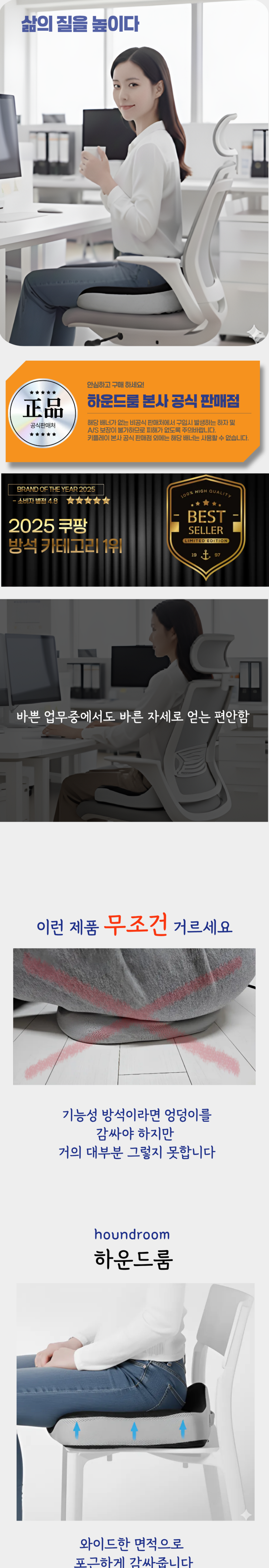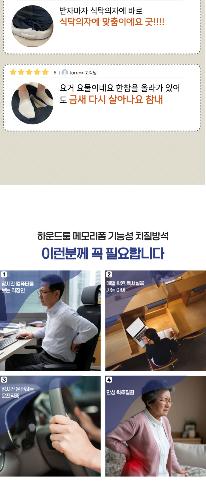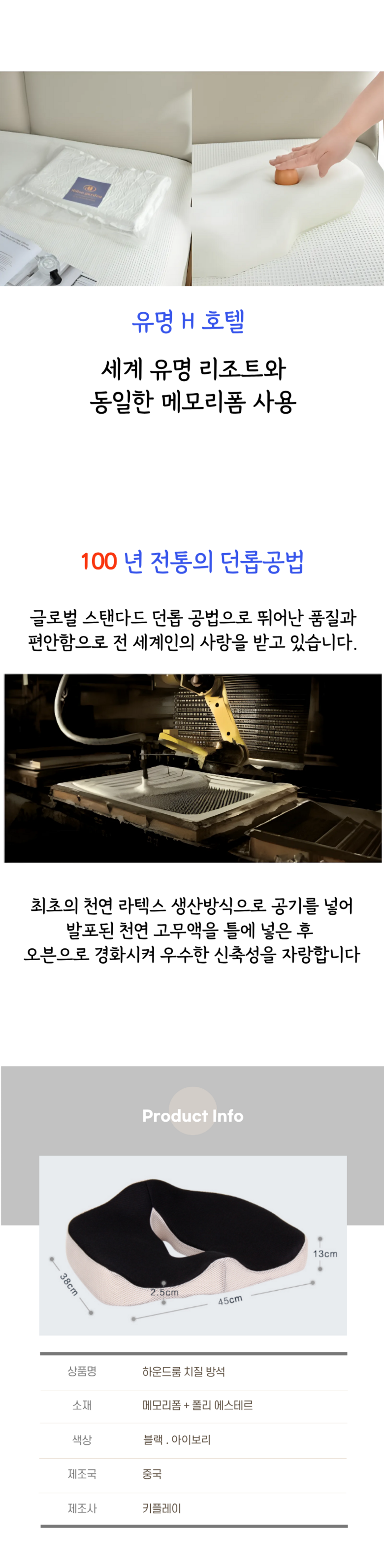 | 품명 및 모델명 | 하운드룸 자세교정 임산부 메모리폼 치질 방석 | 인증/허가 사항 | 해당사항 없음 |
