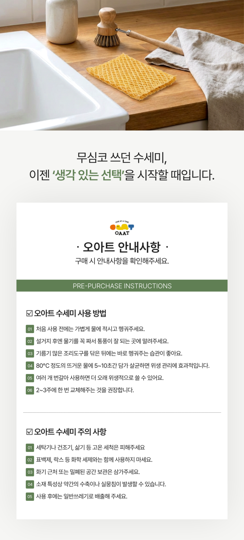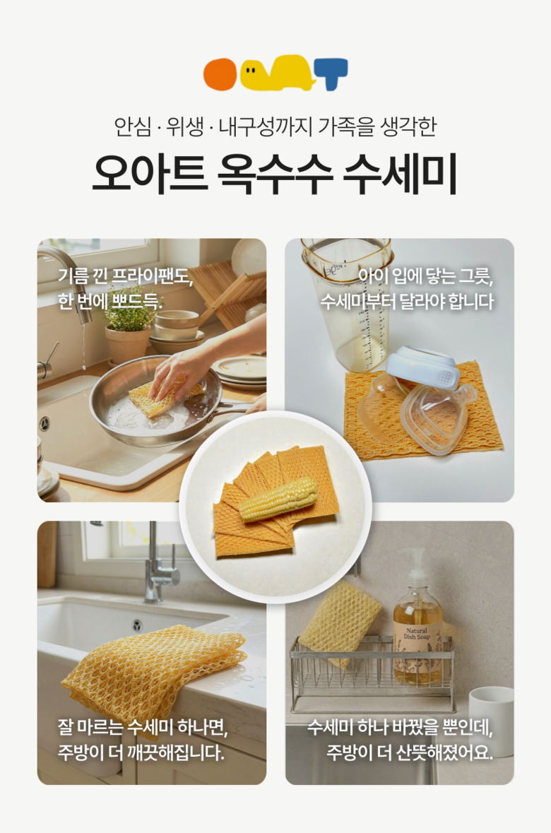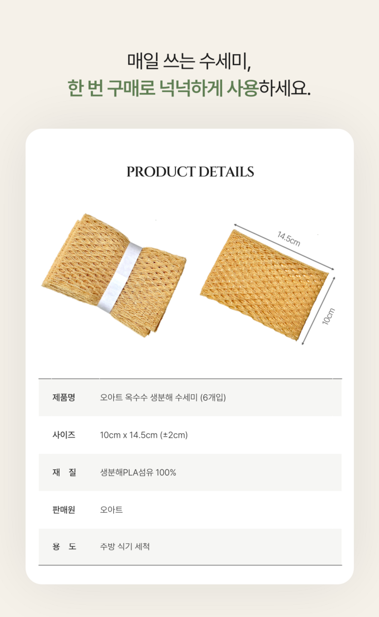| 품명 및 모델명 | 오아트 옥수수 수세미 | 재질 | PLA섬유 100% |