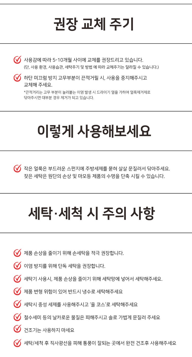 - ㆍ교환/반품에 관한 일반적인 사항은 판매자가 제시사항보다 관계법령이 우선합니다.
