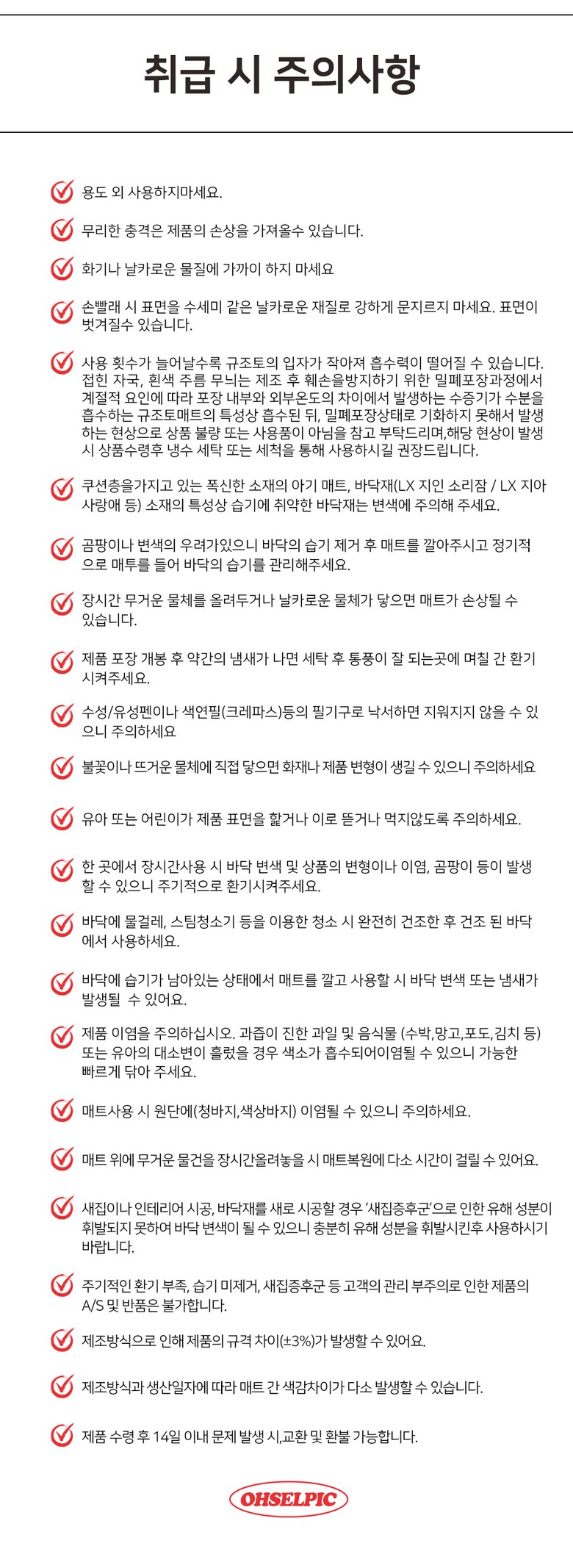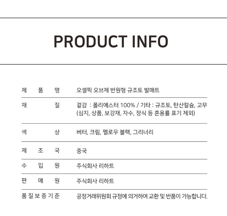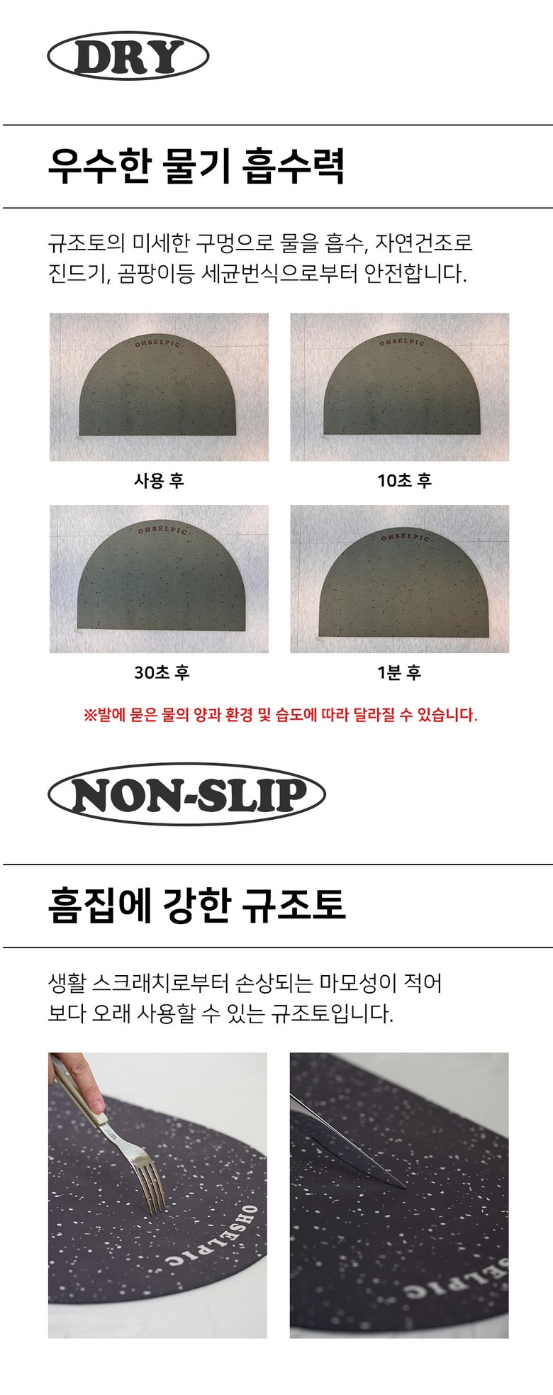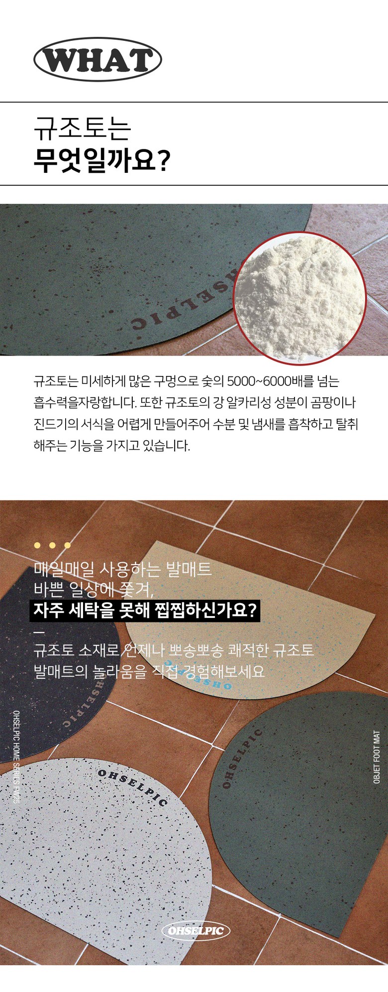 | 품명 및 모델명 | 오셀픽 오브제 반원형 빨아쓰는 규조토 발매트 | 인증/허가 사항 | 상품 상세페이지 참조 |