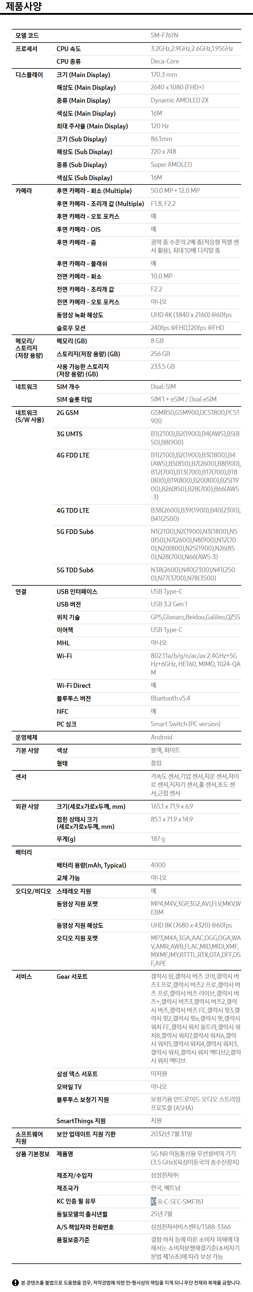 - 모델명/품번: SM-F761N