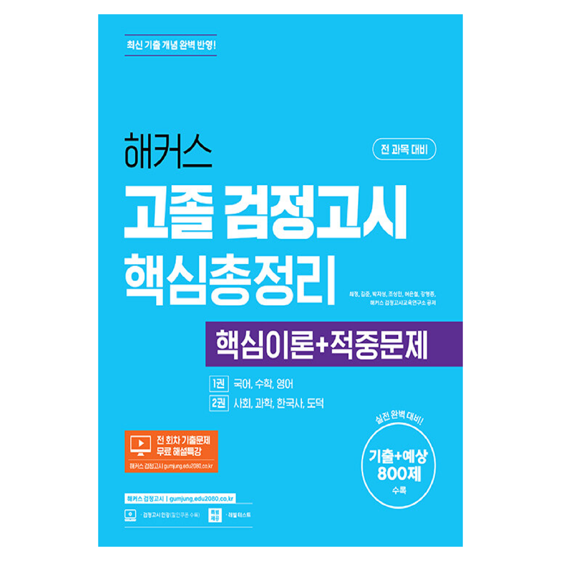 | 도서명 | 해커스 고졸 검정고시 핵심총정리 | 저자, 출판사 | 최정, 김준, 박지성, 조성민, 허은철, 강형종, 해커스 검정고시교육연구소/ 해커스검정고시 |