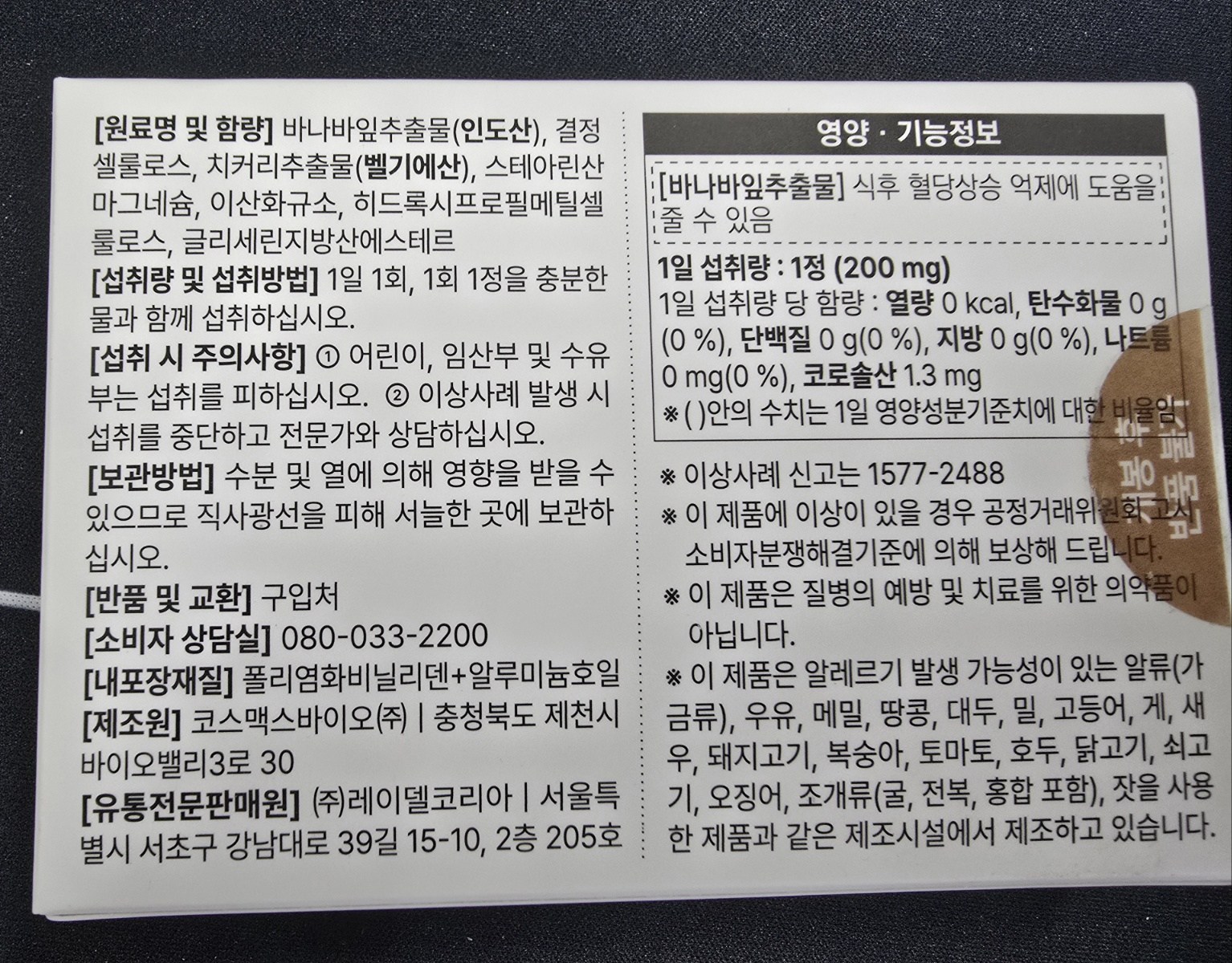| 제품명 | 식후 혈당케어 | 제조업소의 명칭과 소재지 | 컨텐츠 참조 |