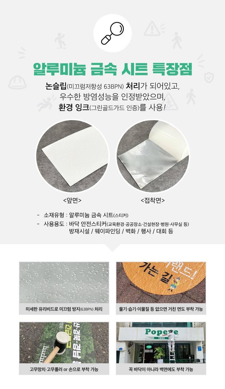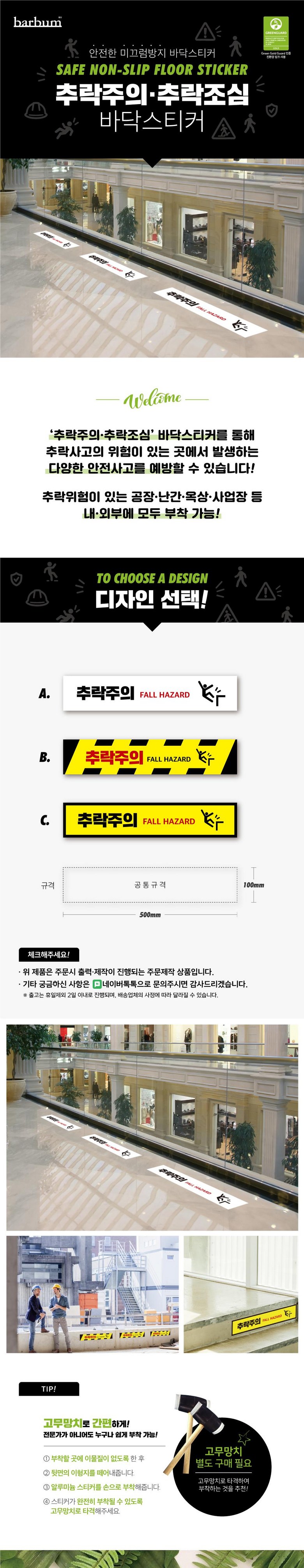 추락주의 스티커 500x100 바닥용 알루미늄 논슬립 미끄럼방지 추락조심 옥상 난간 공사장