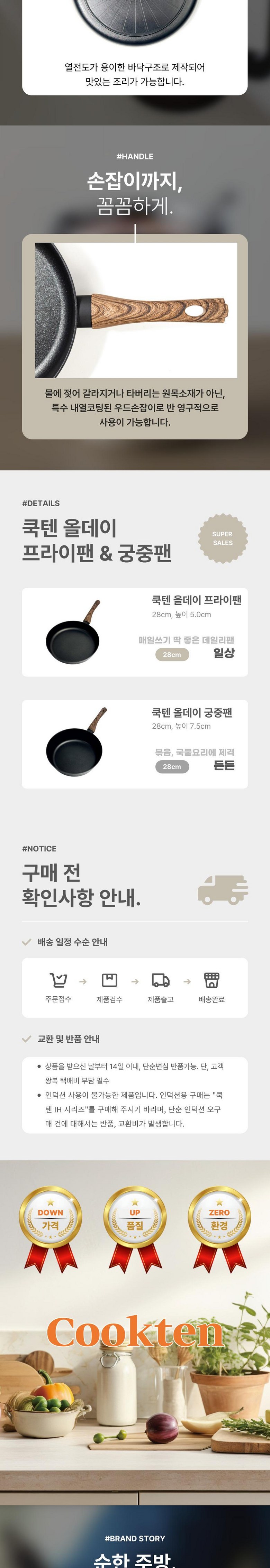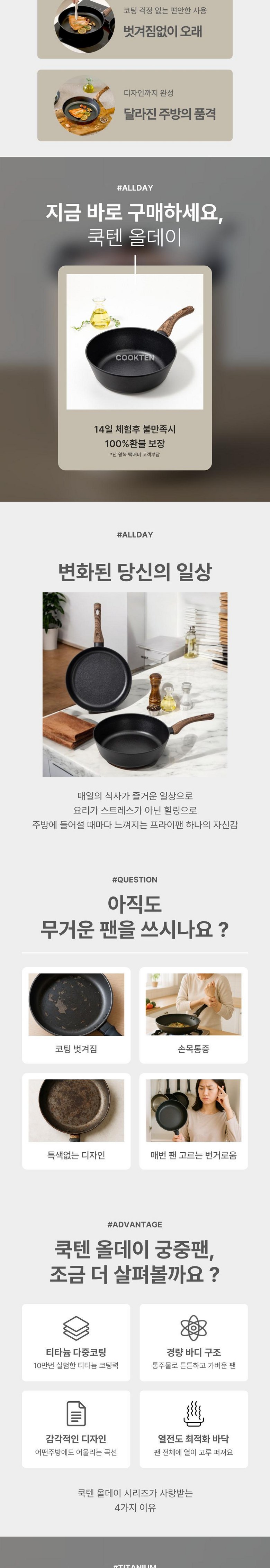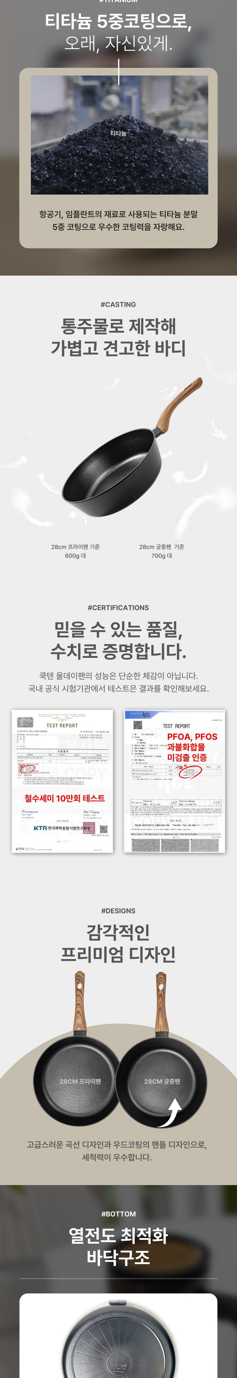 | 품명 및 모델명 | 쿡텐 올데이 28cm 티타늄 궁중팬 | 재질 | 알루미늄, 베이크라이트, 티타늄코팅 |