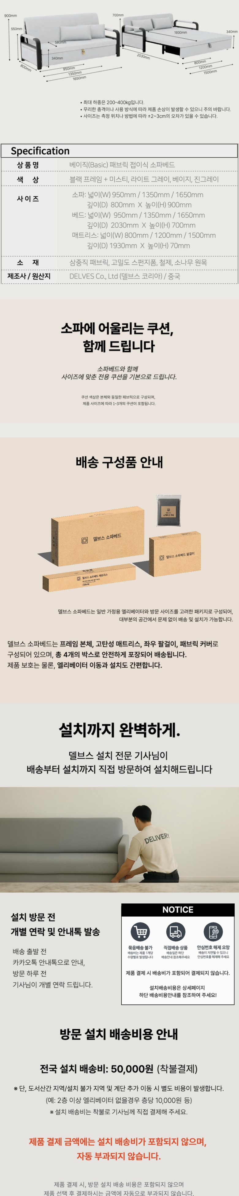 | 배송방법 | 업체직송 | 배송비 | 착불배송(상품별 배송비, 배송가능지역은 상세페이지 참조) - 도서산간 지역 배송불가 |