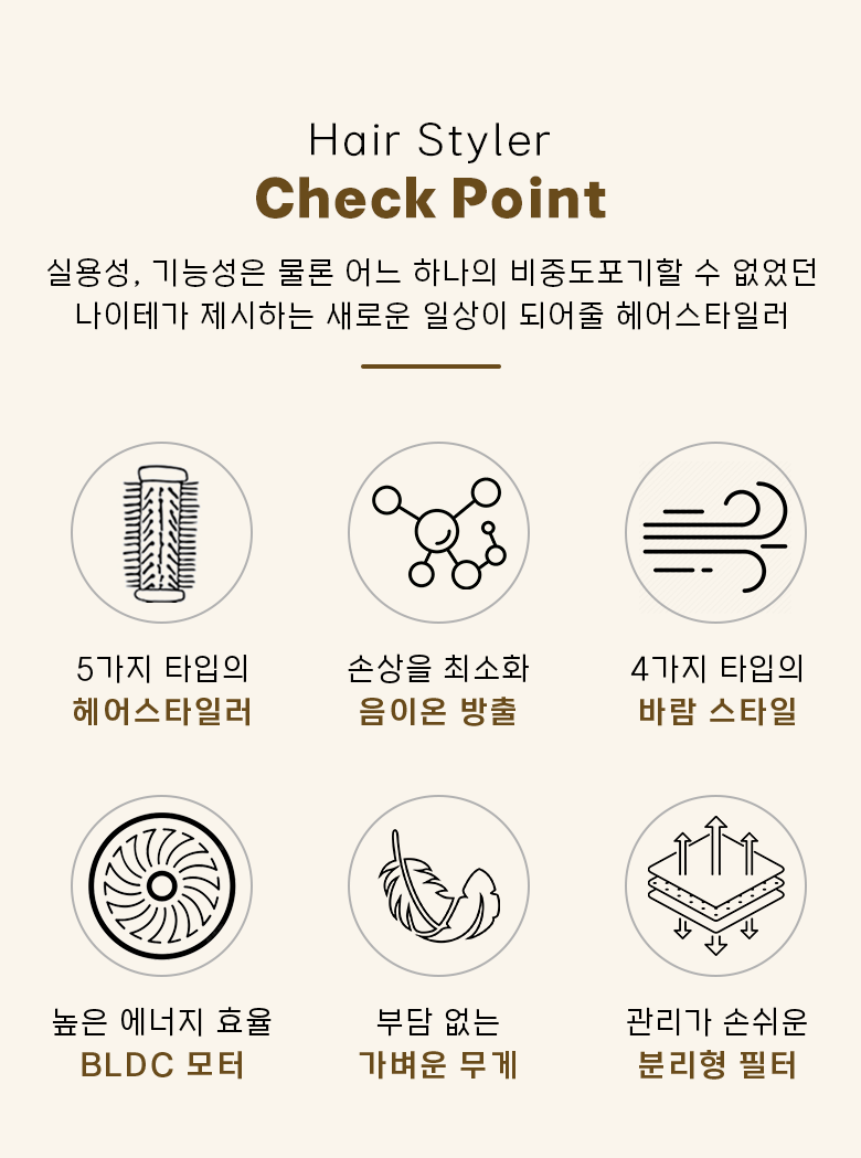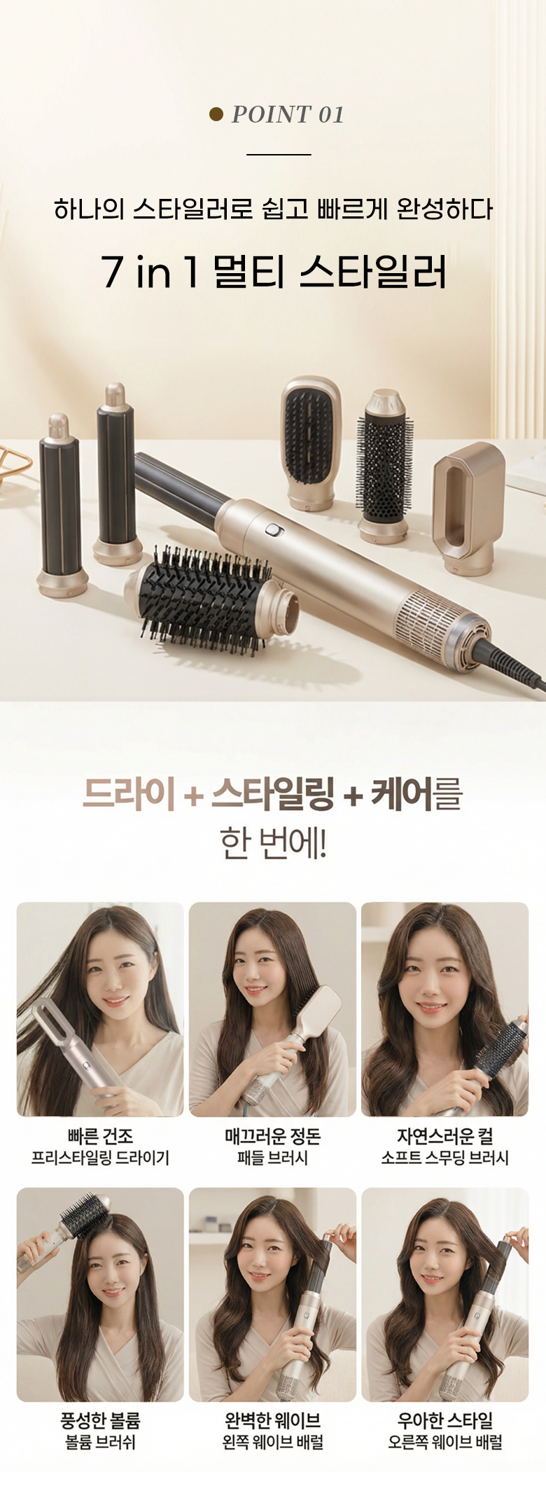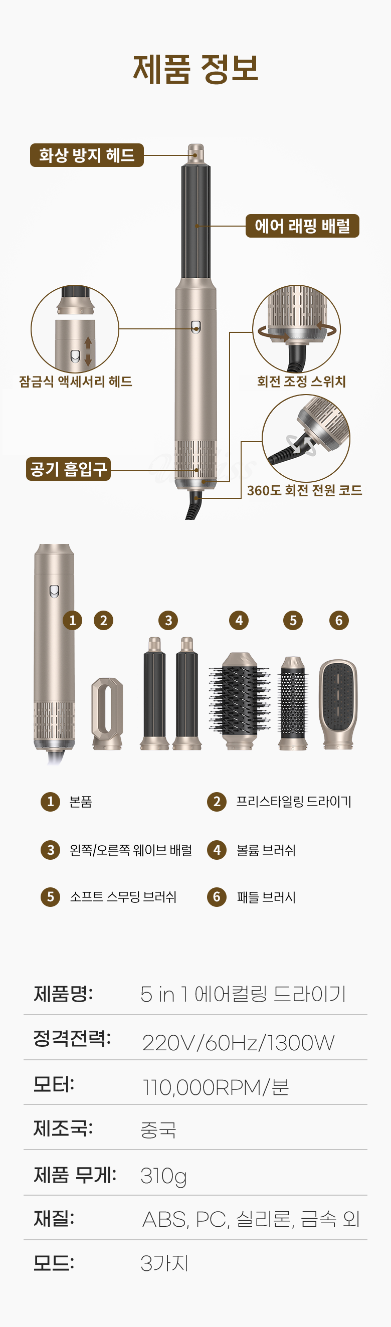 ROYLEA 6in1 멀티 스타일러 BLDC 드라이기 컬/볼륨/스트/음이온/정전기방지 헤어드라이기