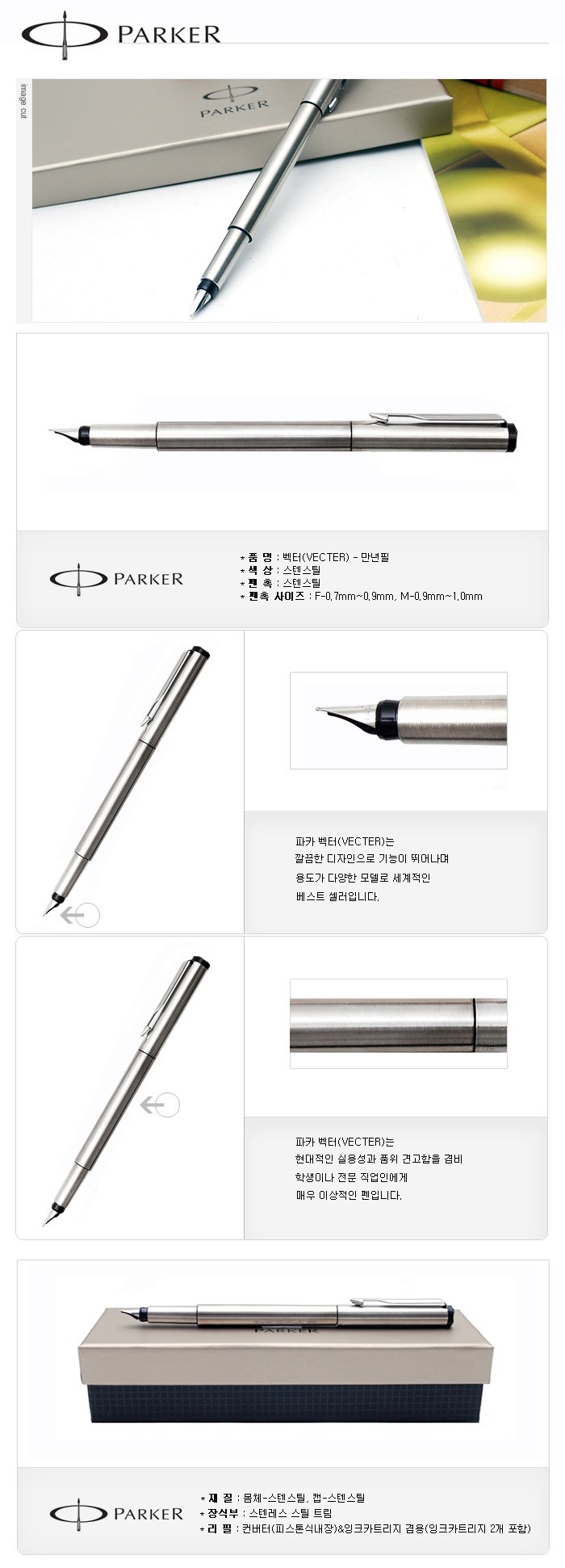 | 품명 및 모델명 | 만년필/벡터/스텐레스 | 인증/허가 사항 | 해당사항없음 |