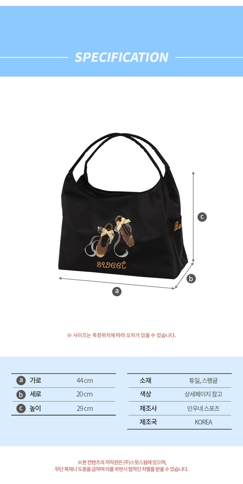 | 종류 | 발레 헬스 스포츠 운동가방 | 소재 | 튜일, 스팽글 |