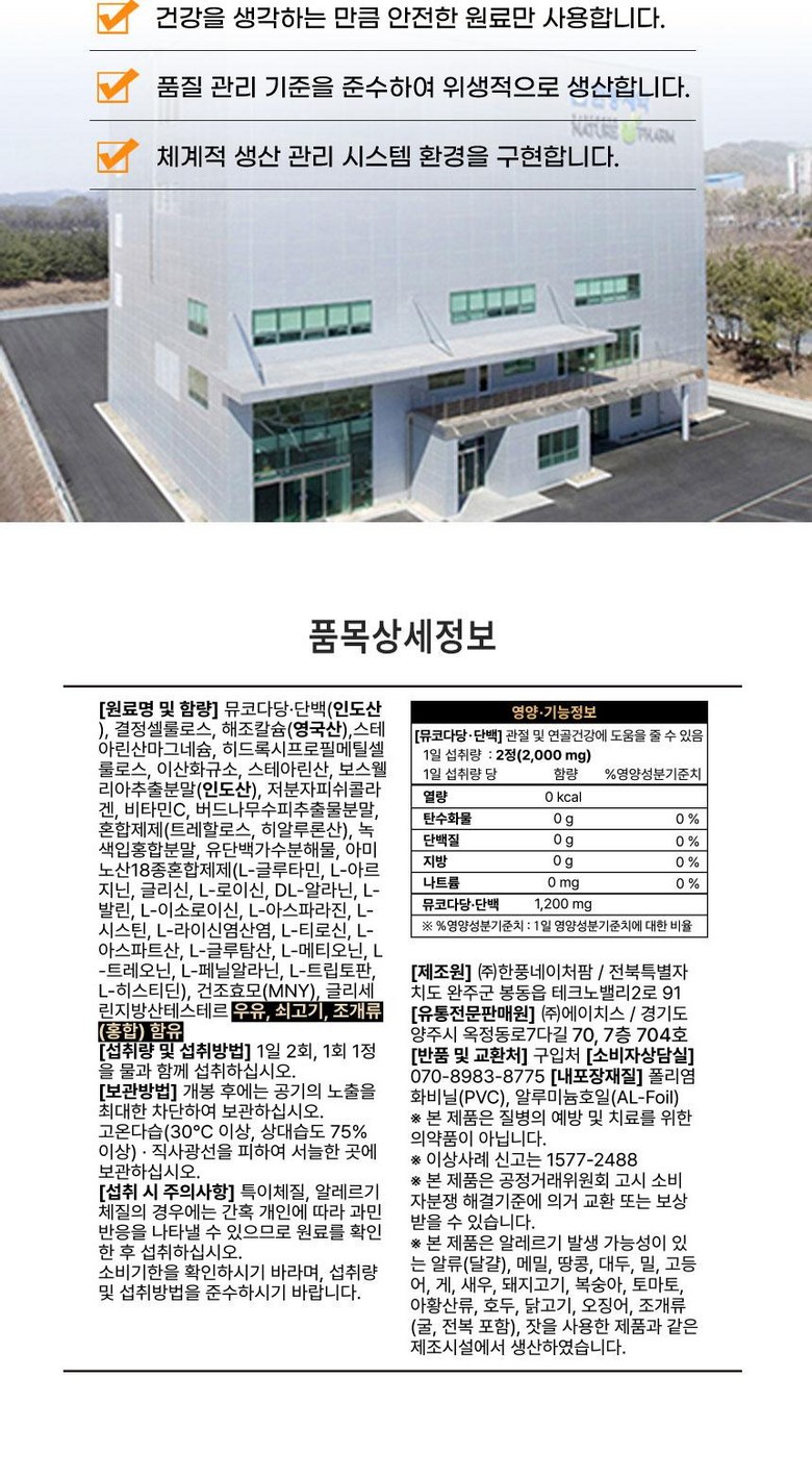 | 원료명 및 함량 | 상품 상세페이지 참조 | 영양정보 | 상품 상세페이지 참조 |