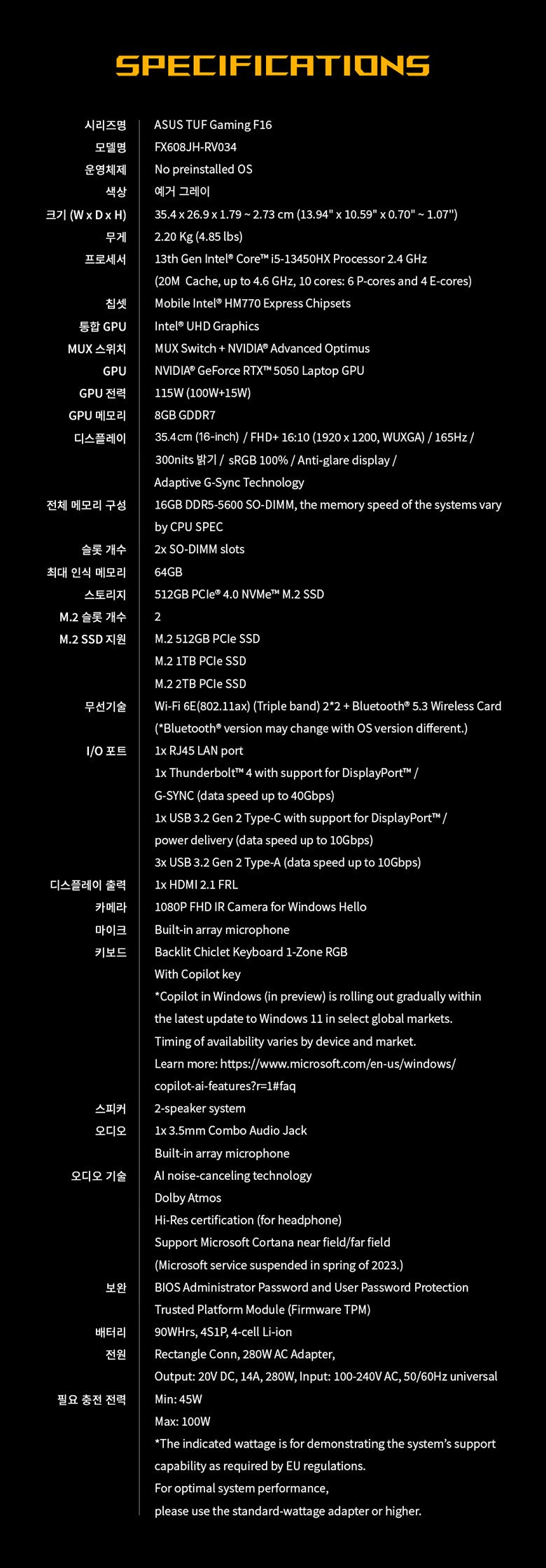 | 품명 및 모델명 | 노트북 / FX608J(FX608JH-RV034) | KC 인증정보 | YU10963-25015, R-R-MSQ-NB-FX608J |