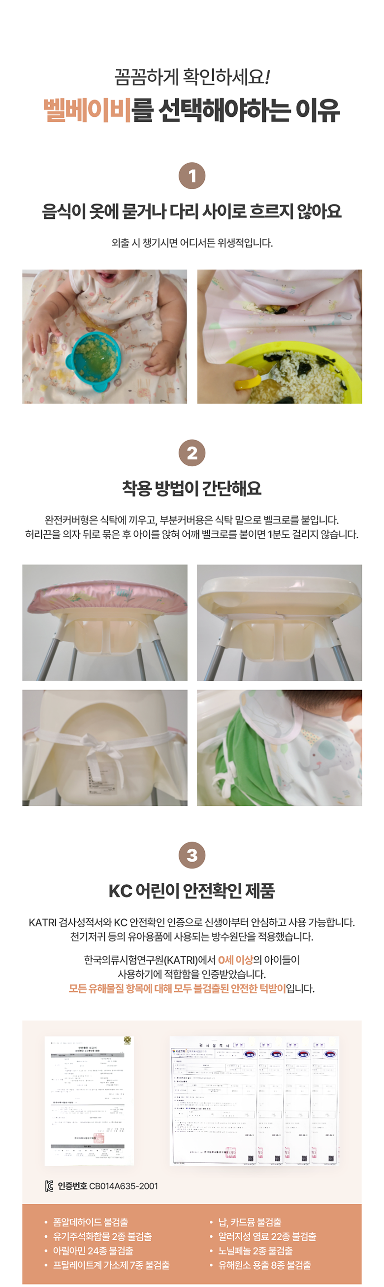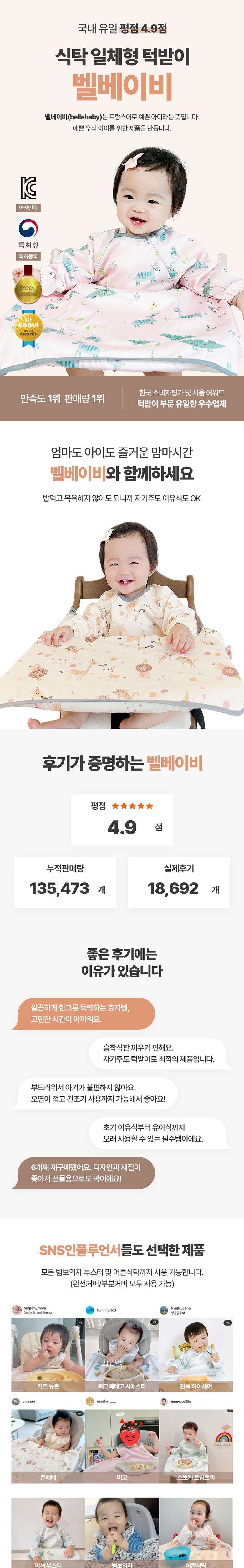 벨베이비 식탁일체형 방수 턱받이 긴팔 완전커버 라지