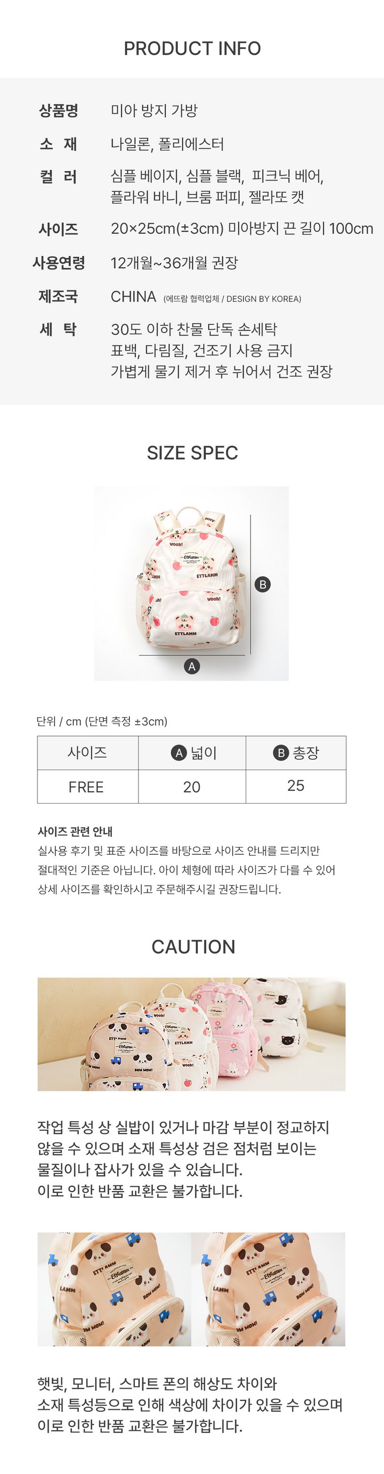 | 품명 및 모델명 | 에뜨람 미아방지가방 6종 | 인증/허가 사항 | CB017R1026-3001 |
