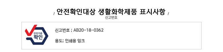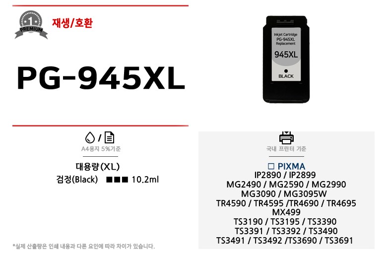 | 품목 및 제품명 | 인쇄용 잉크 피지945엑스엘(PG945XL) | 용도(표백제의 경우 계열을 함께표시) 및 제형 | 인쇄용 잉크/비분사형-카트리지형 |