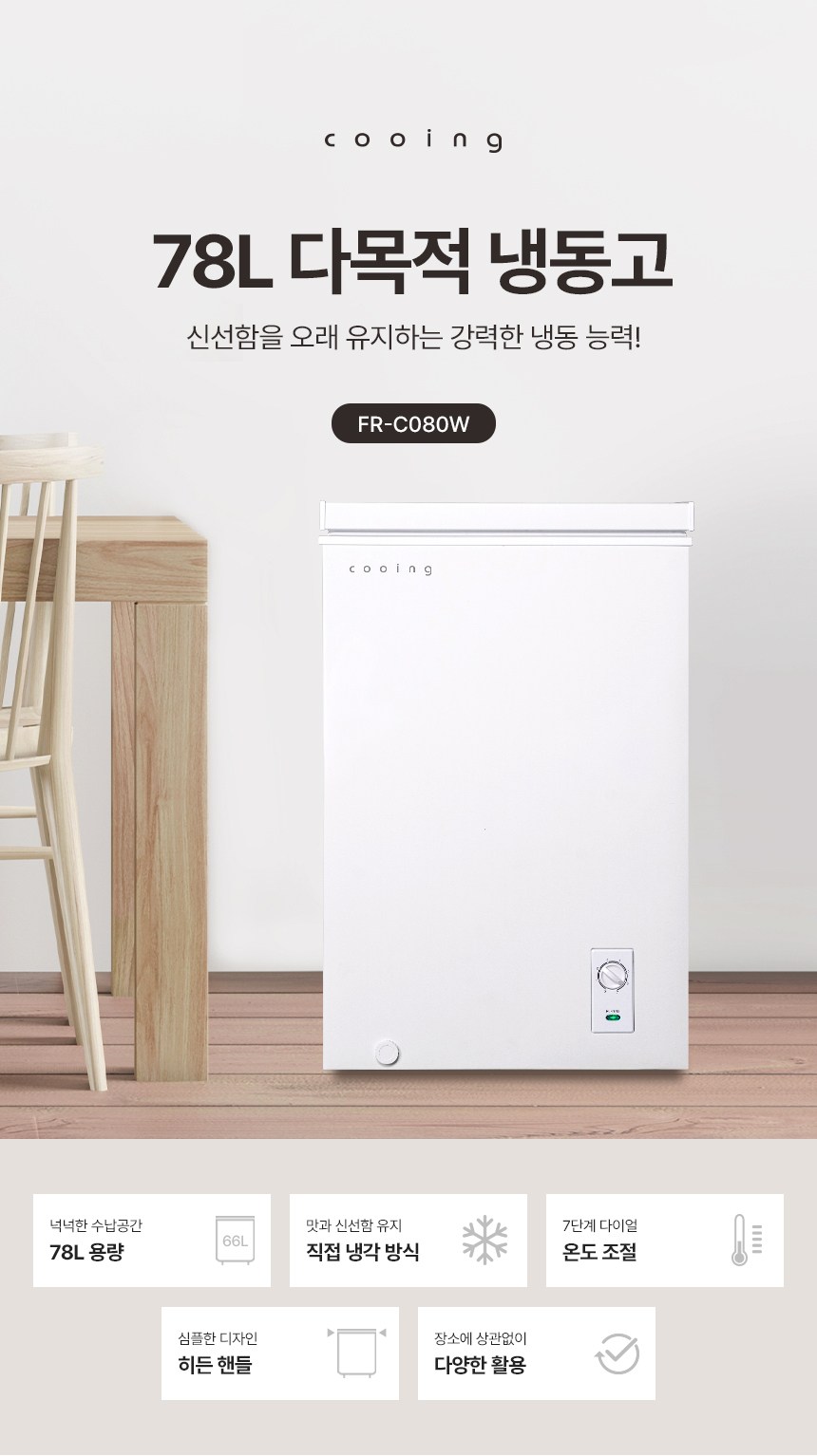 | 품명 및 모델명 | 전기냉동고 / FR-C080W | KC 인증정보 | JU071906-25002, R-R-cne-HC-40-1 |