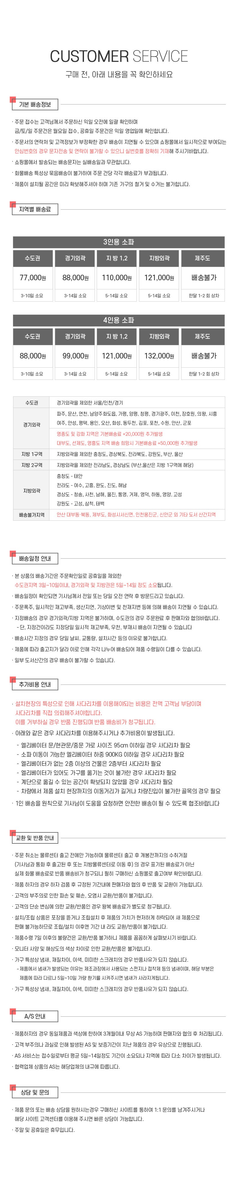 | 배송방법 | 업체직송 | 배송비 | 착불배송(상품별 배송비, 배송가능지역은 상세페이지 참조) - 도서산간 지역 배송불가 |