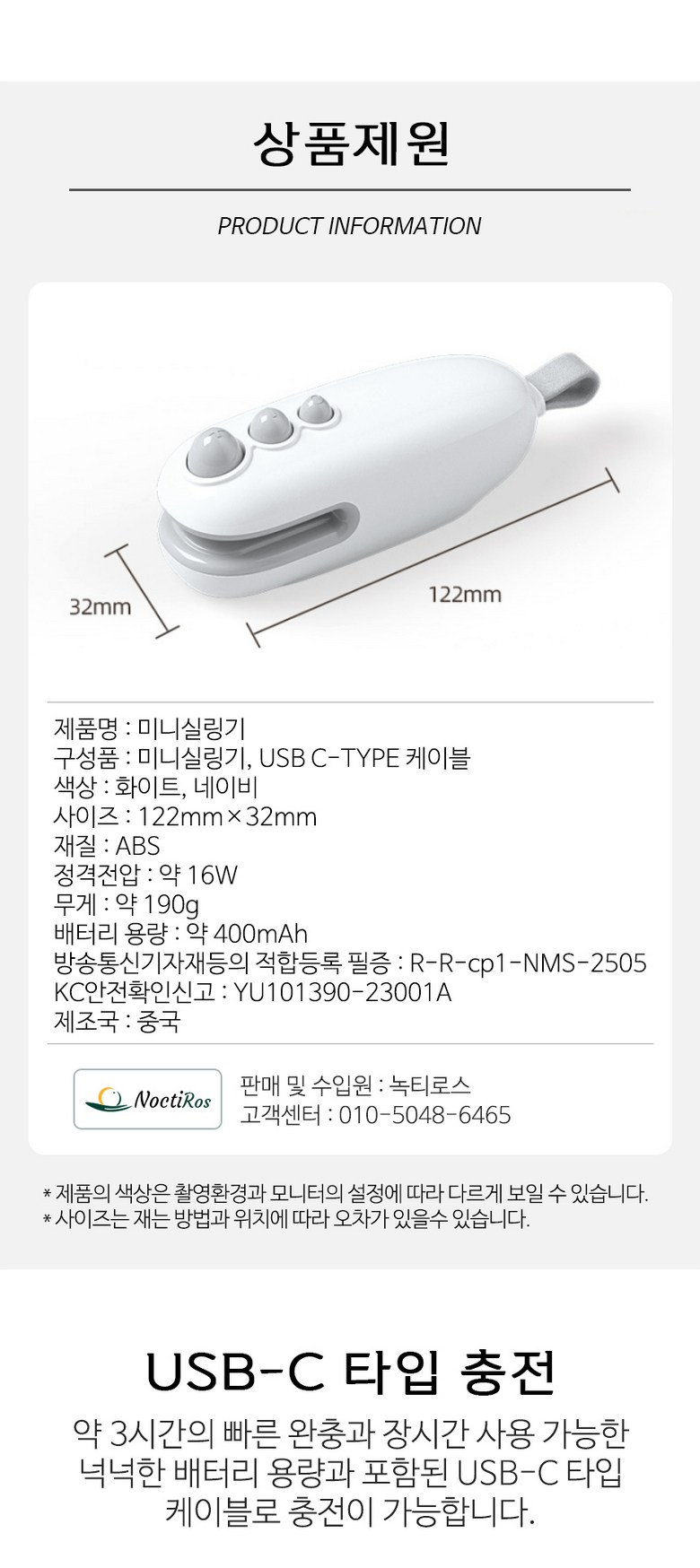 | 품명 및 모델명 | 미니실링기 | 인증/허가 사항 | 상품 상세페이지 참조 |