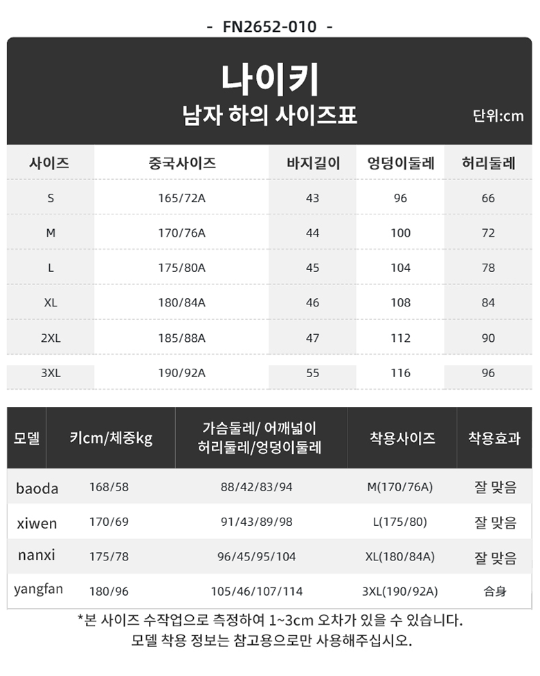 | 치수 | L | 제조자(수입자) | Nike Commercial (China) Co., Ltd |