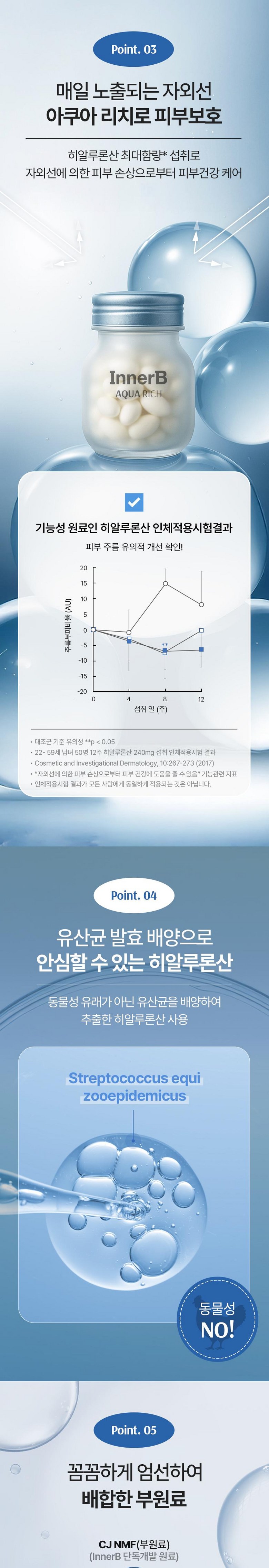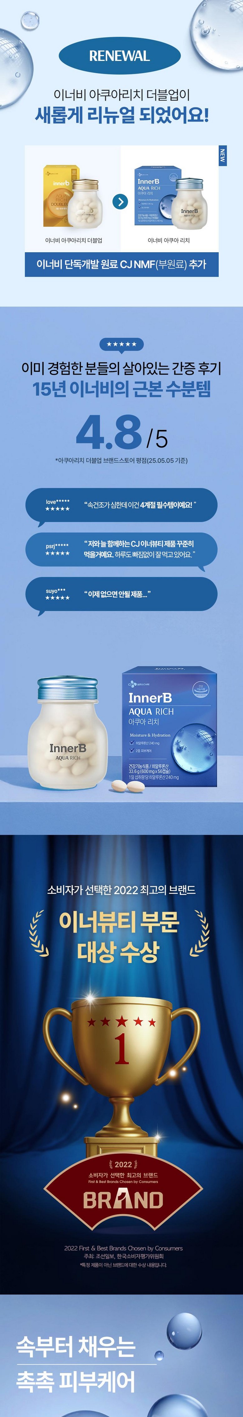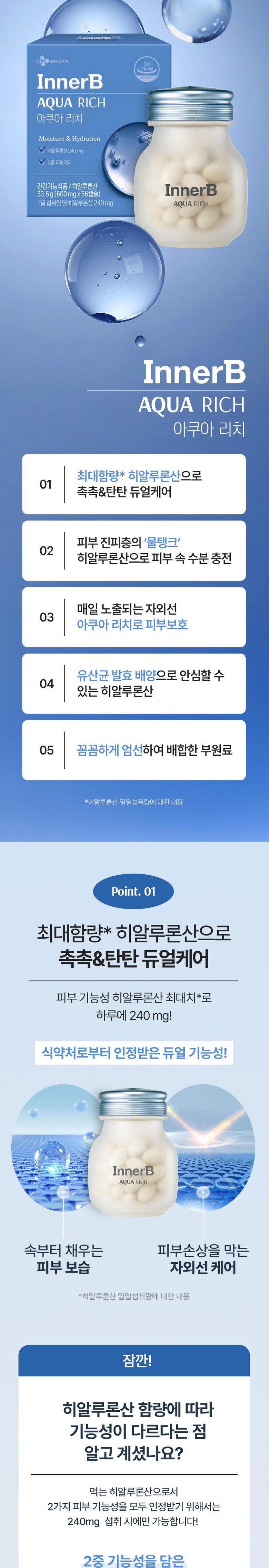 | 제품명 | 아쿠아 리치 | 제조업소의 명칭과 소재지 | "■ 유통전문판매원 : 씨제이웰케어㈜ / 서울특별시 세종대로 14, 5층, 6층■ 건강기능식품전문제조원 : (주)서흥 / 충청북도 청주시 흥덕구 오송읍 오송생명로 61" |