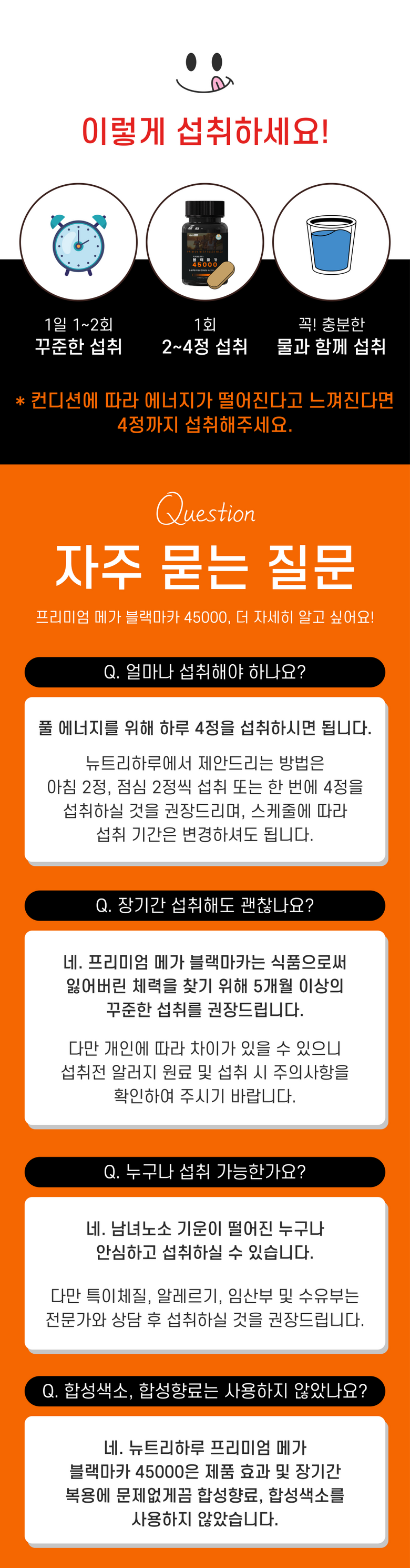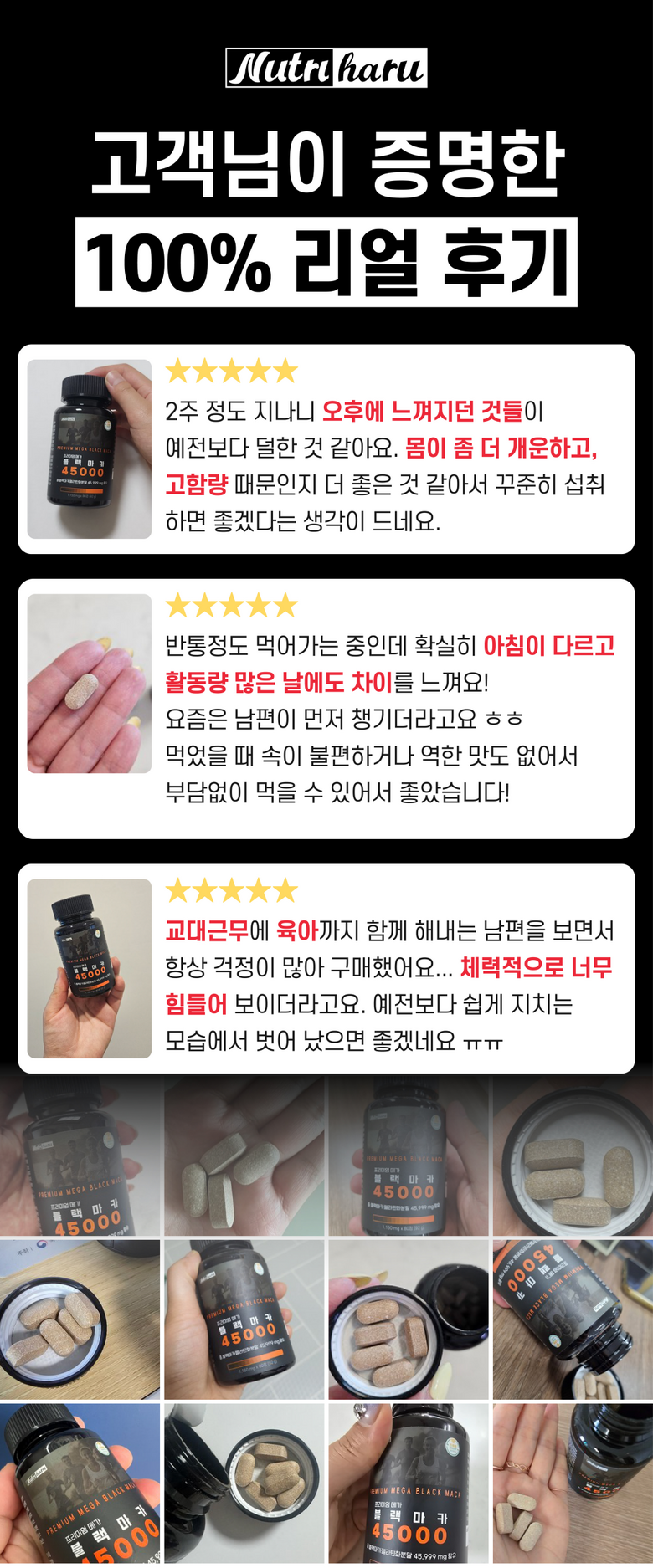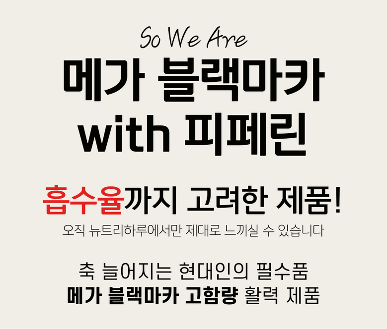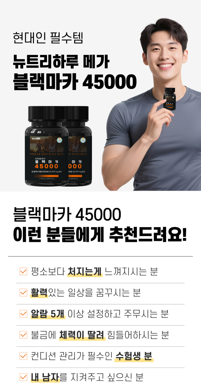 | 제품명 | 뉴트리하루 프리미엄 메가 블랙마카 45000 | 식품의 유형 | 과채가공품 |