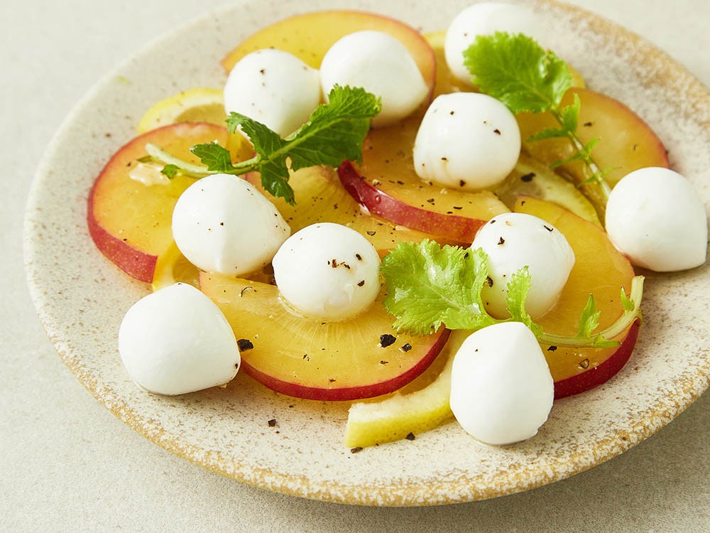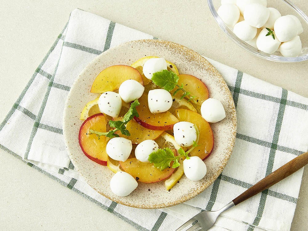 모짜렐라커드를 작은 공 모양으로 빚은 보코치니예요. 숙성을 덜 거친 모짜렐라커드를 사용해 촉촉하고 쫀득한 식감이 일품이죠. 향이 강하지 않고 담백해 어느 요리에 넣어도 잘 어울린답니다. 샐러드, 파스타의 토핑으로 활용해도 좋고, 꼬치에 방울토마토와 프로슈토를 번갈아 끼워 핑거푸드로 만들어도 좋아요.
