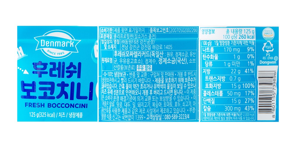 | 제품명 | 후레쉬 보코치니 | 식품의 유형 | 치즈 |