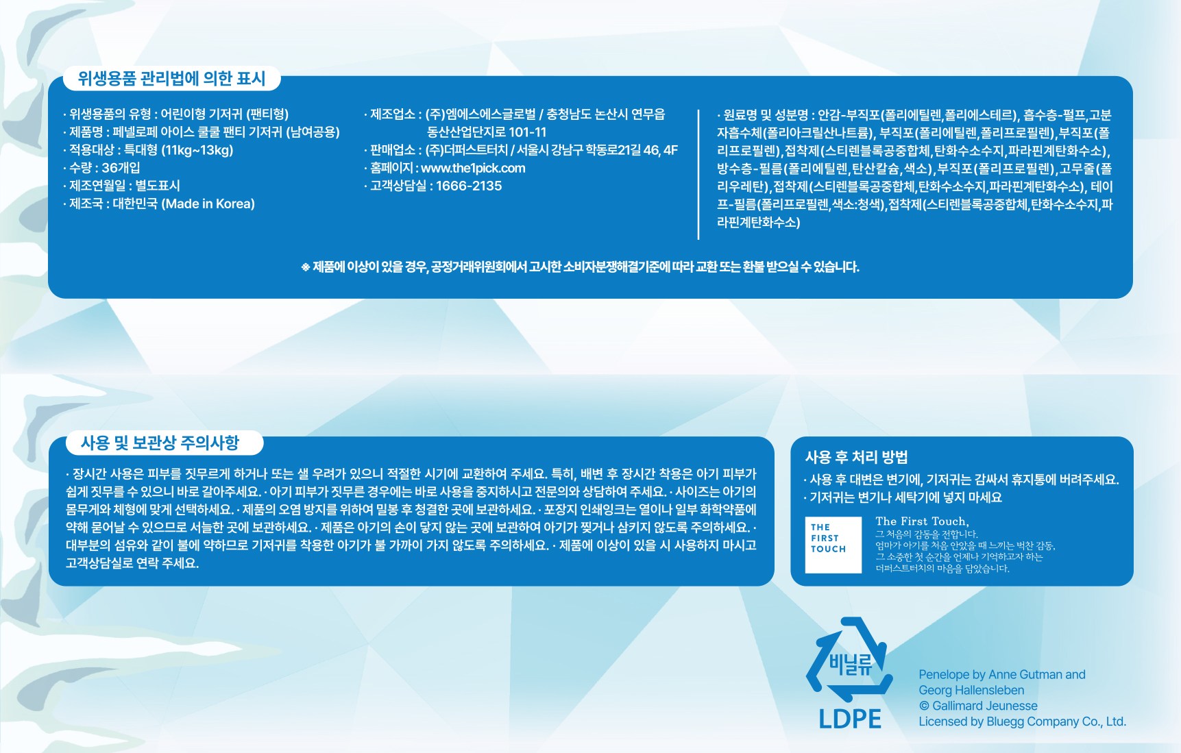 | 품명 및 모델명 | 페넬로페 아이스 쿨쿨 팬티 기저귀 | 인증/허가 사항 | 위생용품 |