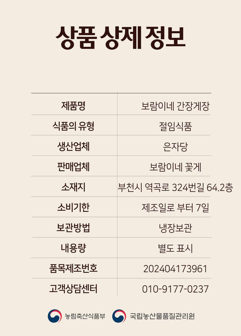 상호/대표자 | 보람이네 꽃게 / 최보람 | 사업장 소재지 | 경기도 부천시 오정구 역곡로324번길 64 2층 |