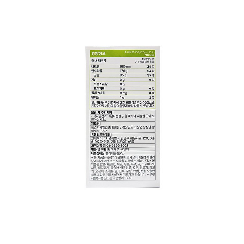 | 원료명 및 함량 | 상품 상세페이지 참조 | 영양정보 | 상품 상세페이지 참조 |