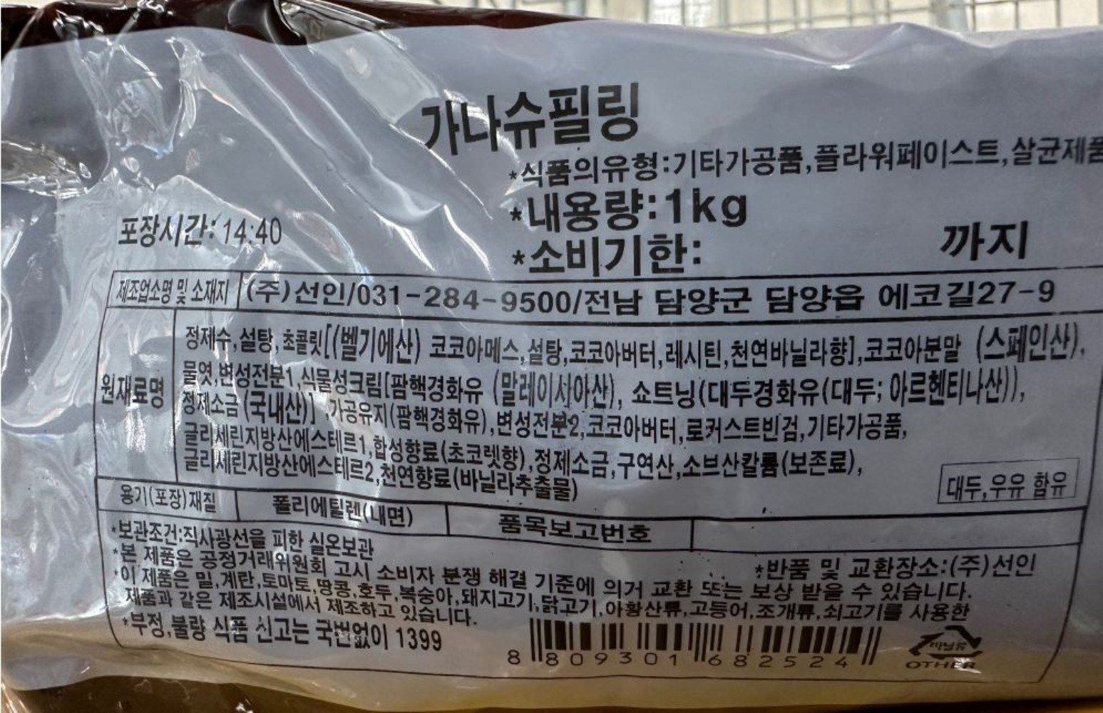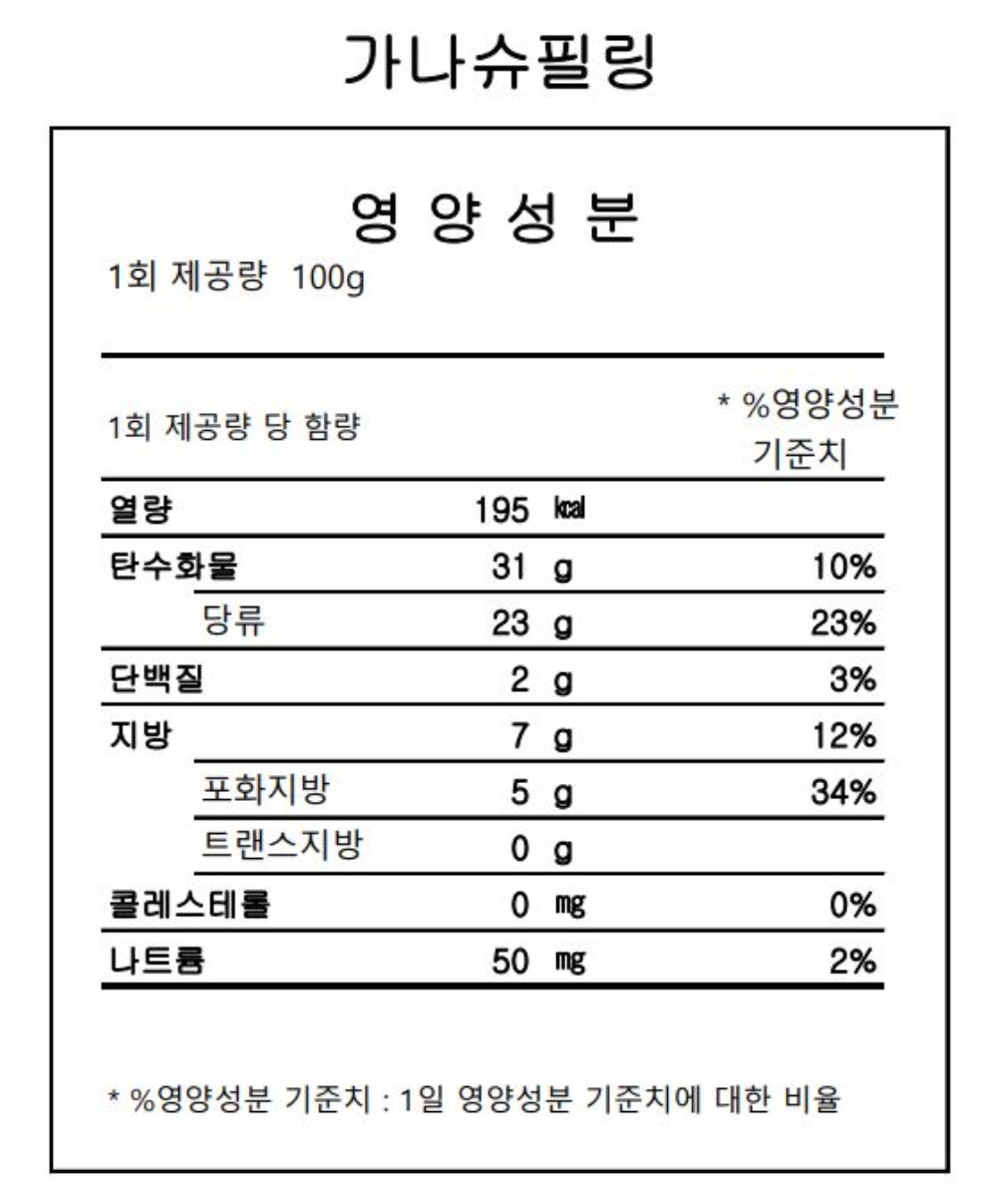 | 제품명 | 가나슈필링 | 식품의 유형 | 컨텐츠 참조 |