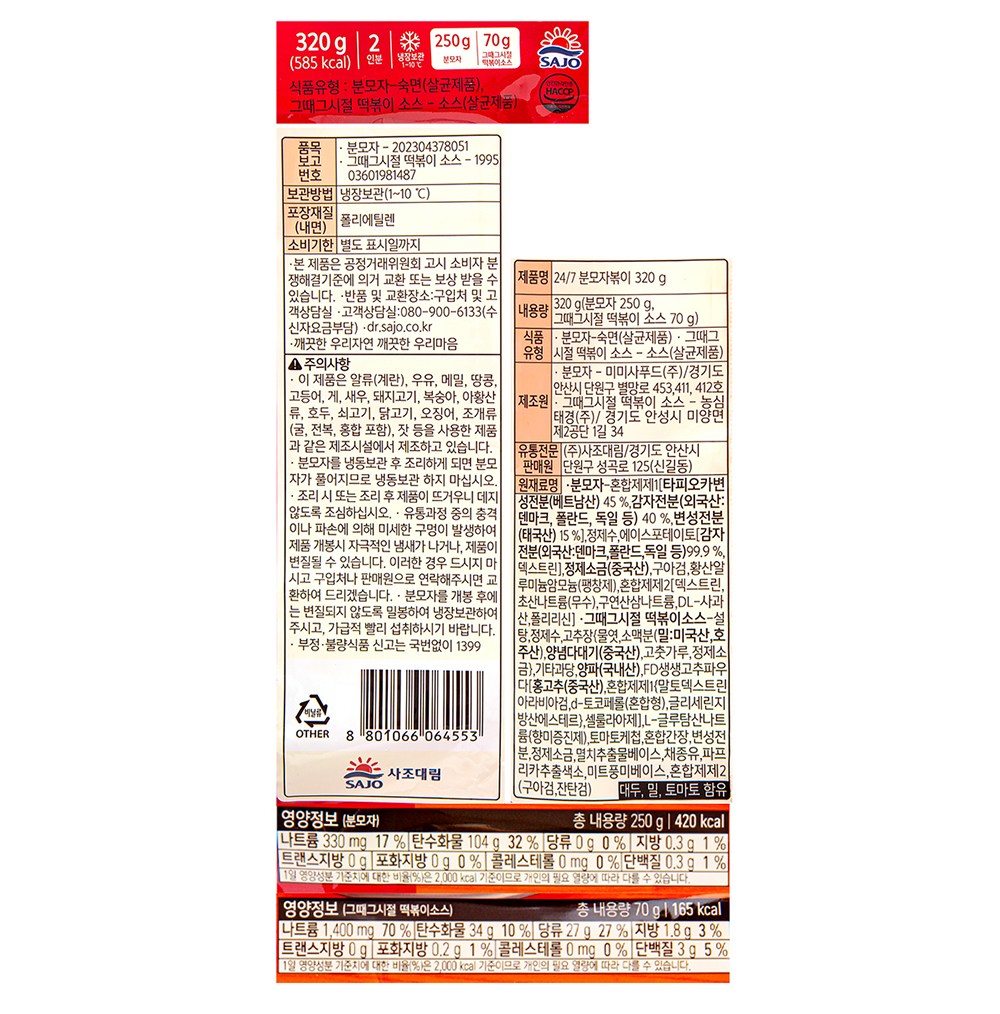 | 제품명 | 분모자+그때그시절 떡볶이 소스 | 식품의 유형 | 컨텐츠 참조 |
