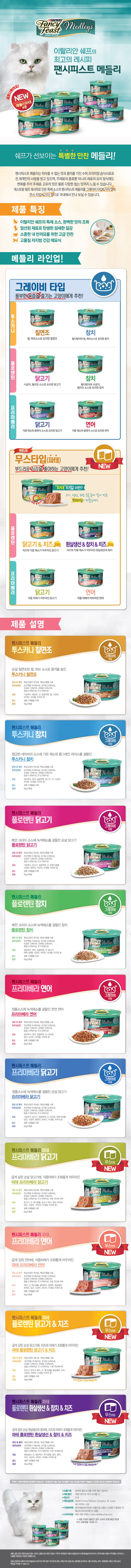 | 품명 및 모델명 | 팬시피스트 메들리 플로렌틴 닭고기 | 인증/허가 사항 | 사료관리법에 따른 성분등록번호 : 컨텐츠 참조 |