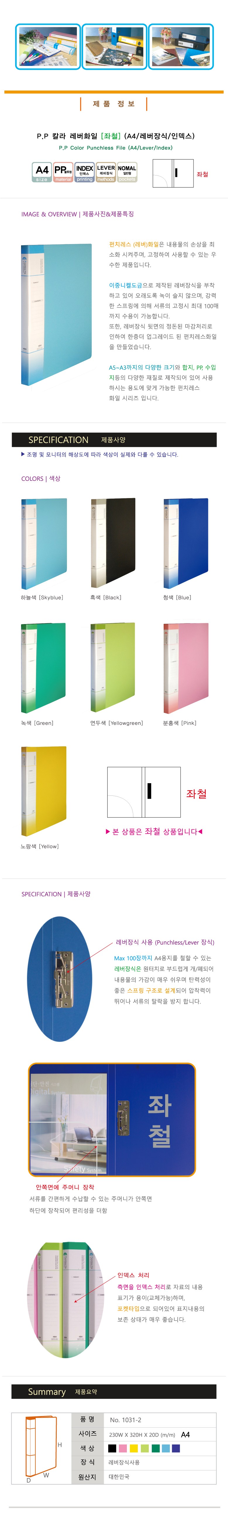 | 품명 및 모델명 | PP 칼라 레버화일 인덱스/좌철 | 인증/허가 사항 | 해당없음(14세 이상) |