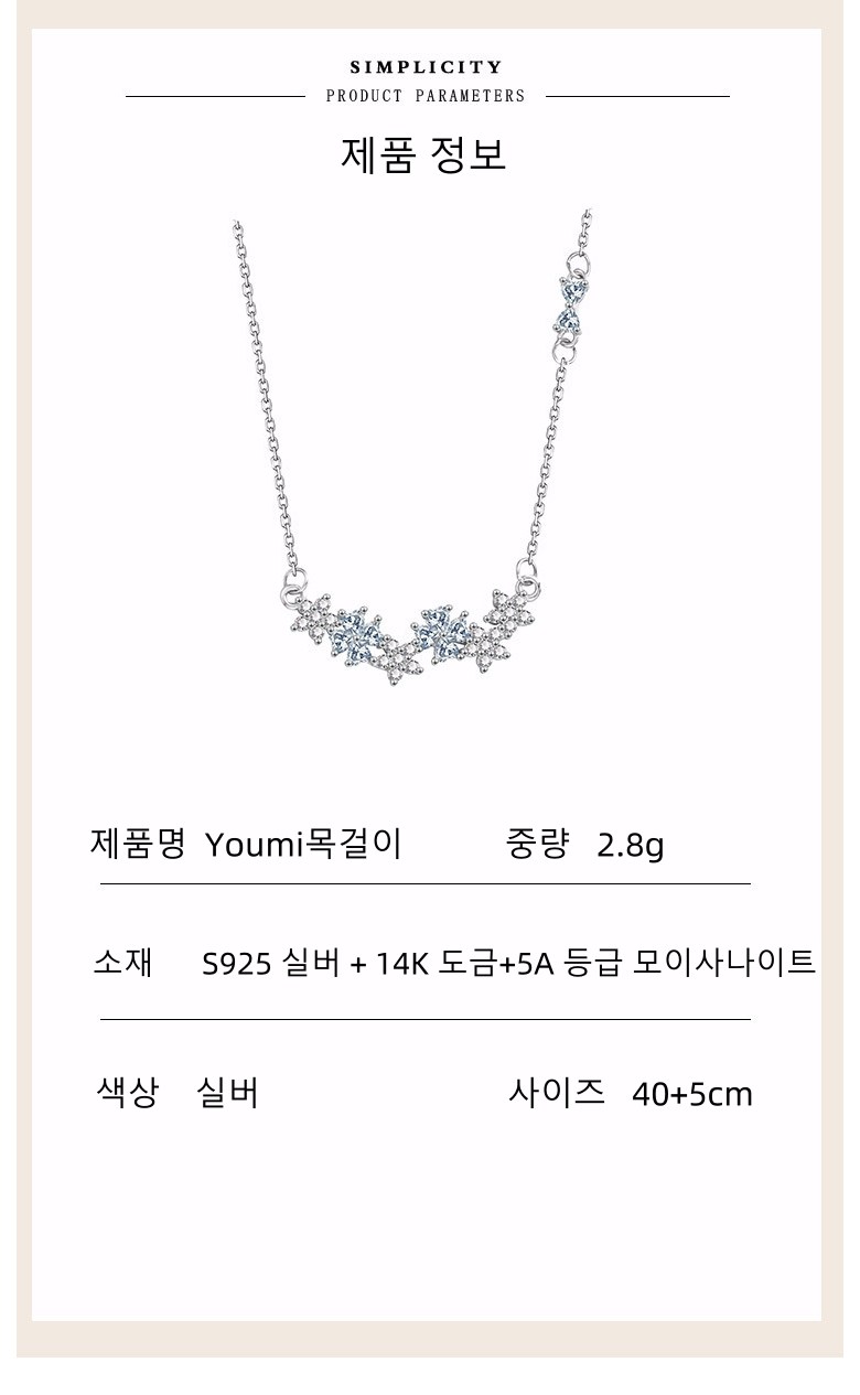Youmi S925 순은 플라워 목걸이 여성 데일리 SP01