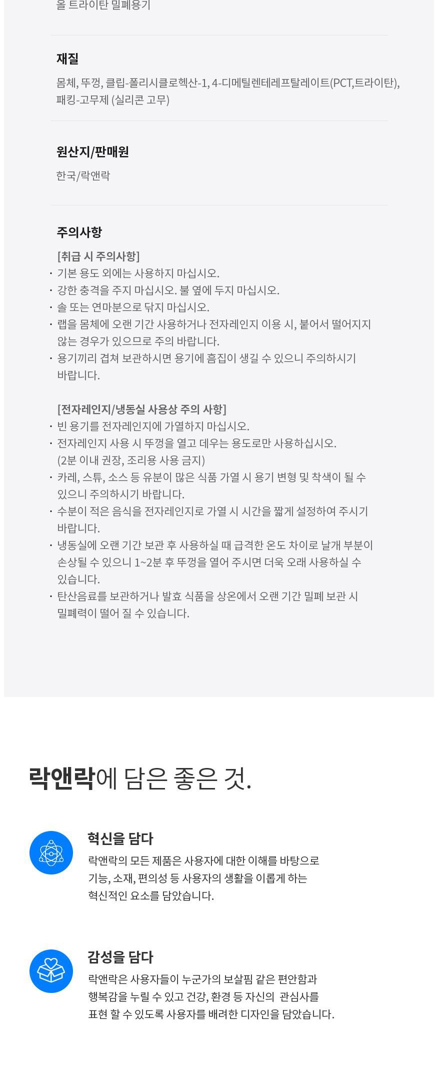 | 품명 및 모델명 | 락앤락 올트라이탄 밀폐용기 260ML | 재질 | 컨텐츠 참조 |