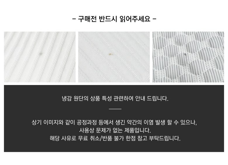 - ㆍ모니터 해상도의 차이로 인해 색상이나 이미지가 실제와 달라, 고객이 단순 변심으로 교환/반품을 무료로 요청하는 경우