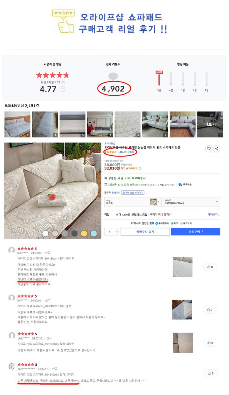 동일한 상품에 대해 작성된 상품 리뷰로, 판매자는 다를 수 있습니다.