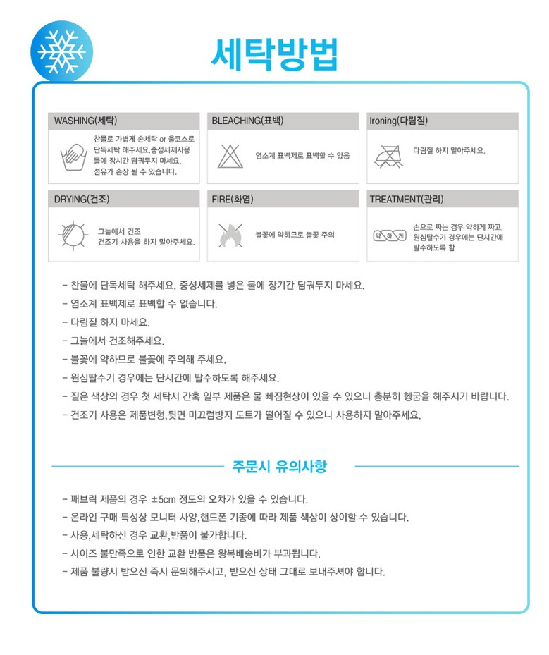 - 세탁방법: 세탁기사용가능