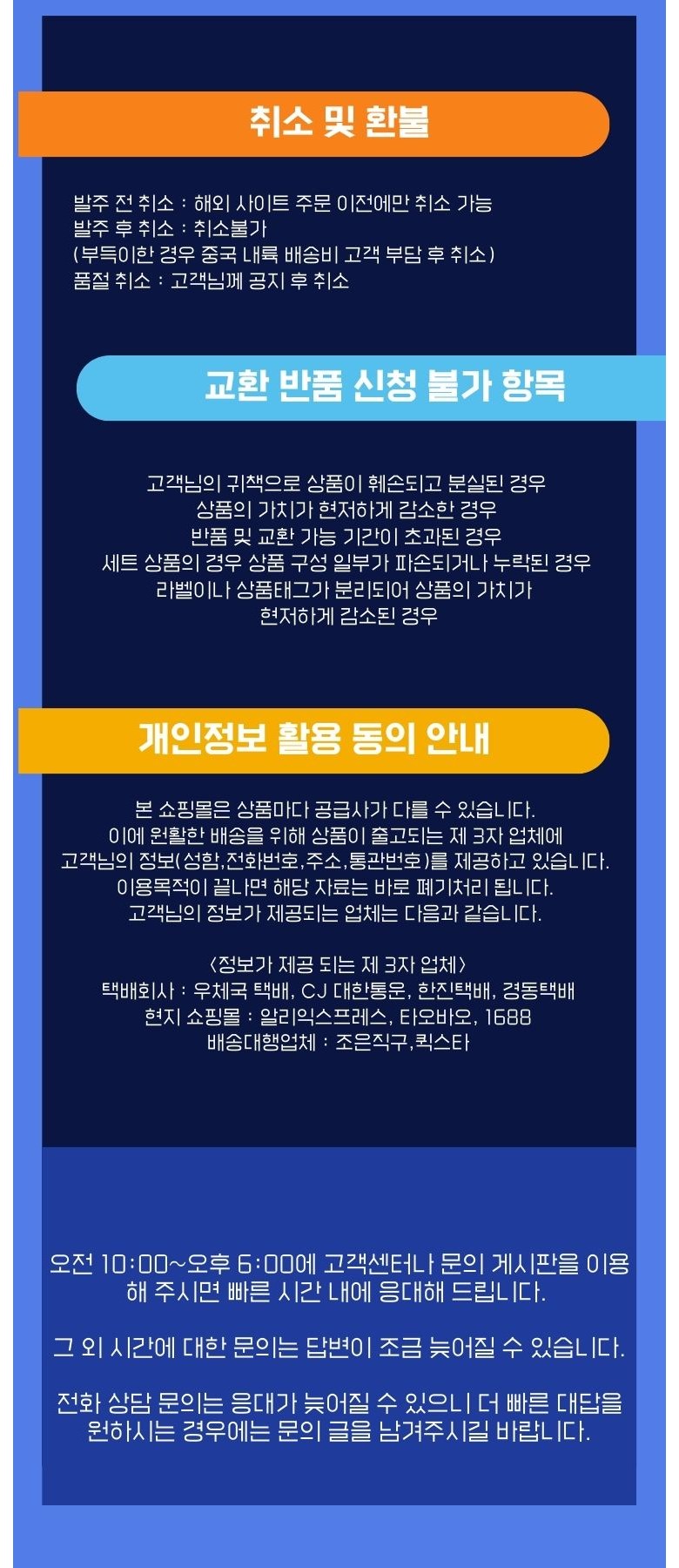 - ㆍ교환/반품에 관한 일반적인 사항은 판매자가 제시사항보다 관계법령이 우선합니다.