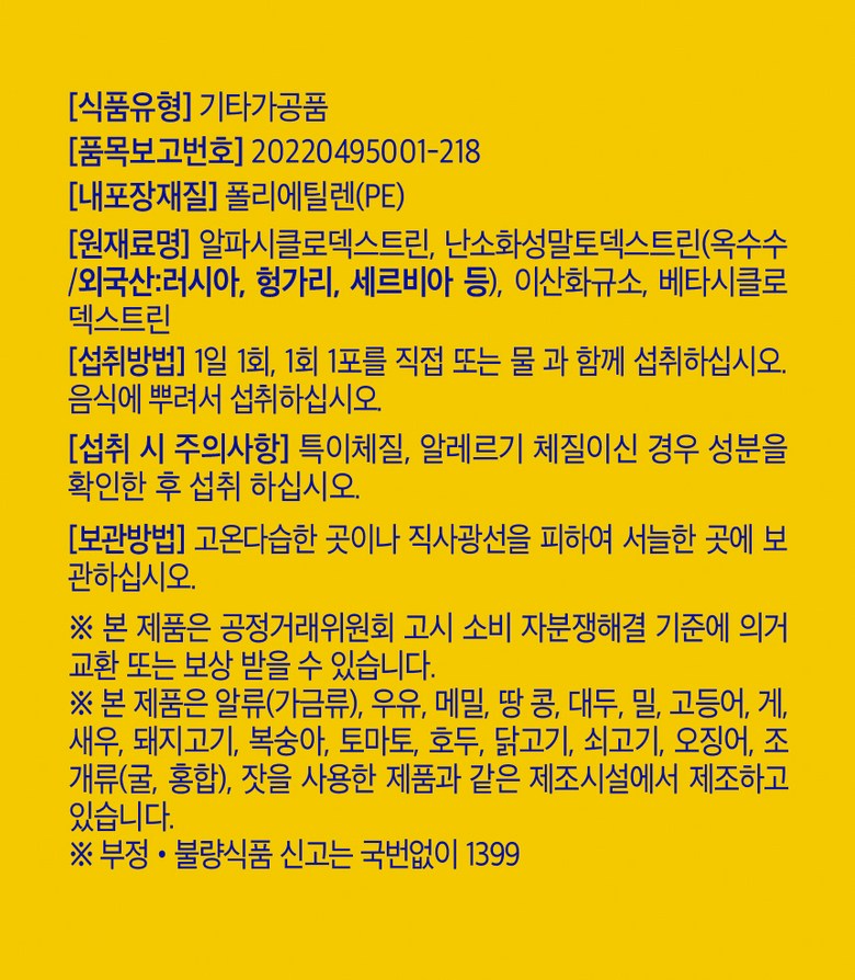 | 제품명 | 상품 상세페이지 참조 | 식품의 유형 | 상품 상세페이지 참조 |