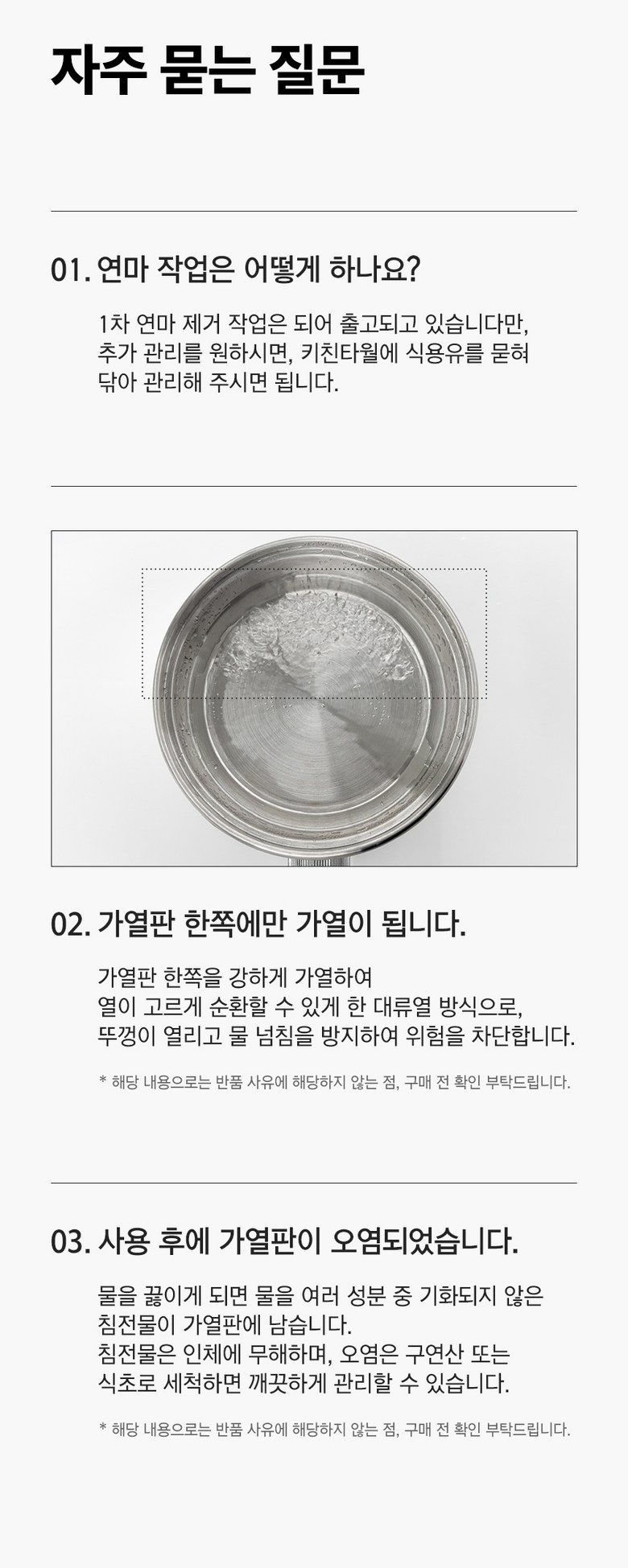 - 가격, 판매자, 교환/환불 및 배송 등 해당 상품 자체와 관련 없는 문의는 고객센터 내 1:1 문의하기를 이용해주세요.