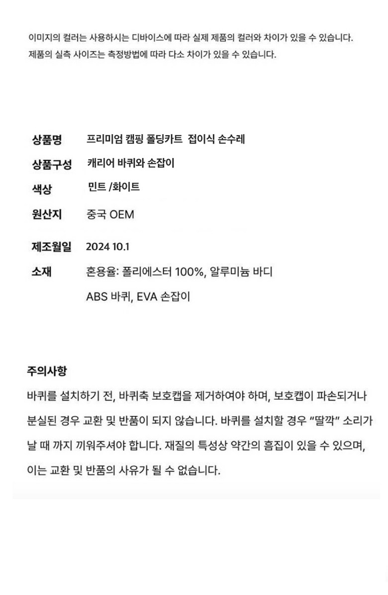 | 품명 및 모델명 | Owete 접이식카트 대형 4바퀴 손수레 마트 장바구니 캠핑 핸드 폴딩 쇼핑카트 | 인증/허가 사항 | 상품 상세페이지 참조 |