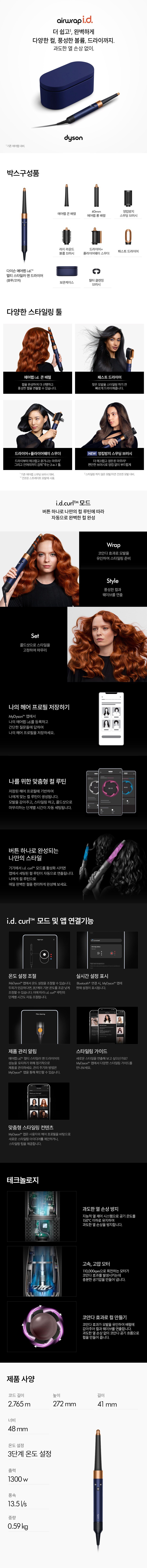 | 품명 및 모델명 | 다이슨 에어랩 i.d. 멀티 스타일러 앤 드라이어 블루/코퍼 / HS08 | KC 인증정보 | HU071039-17007K , R-R-DkL-HS08 |