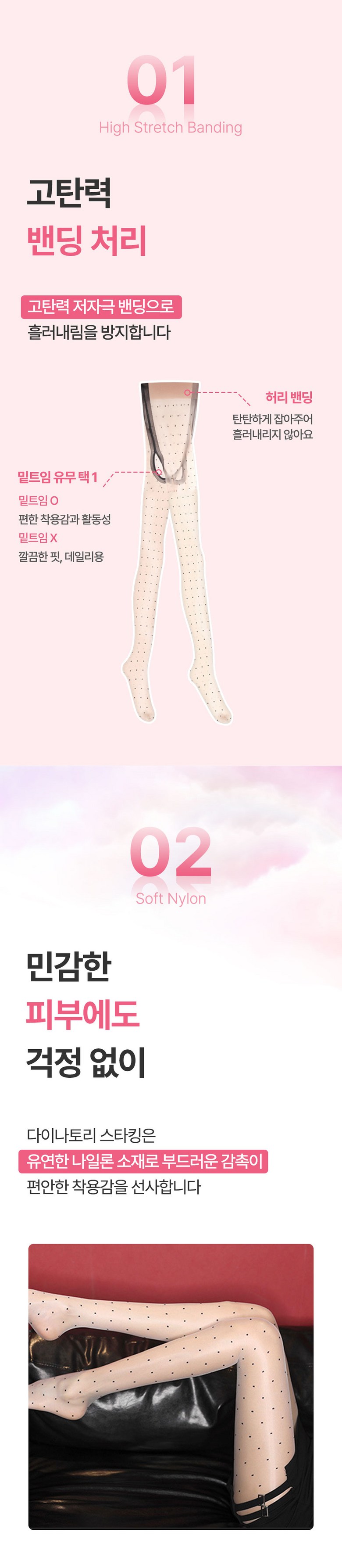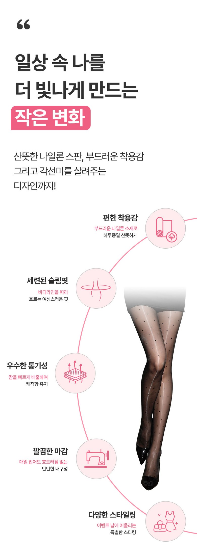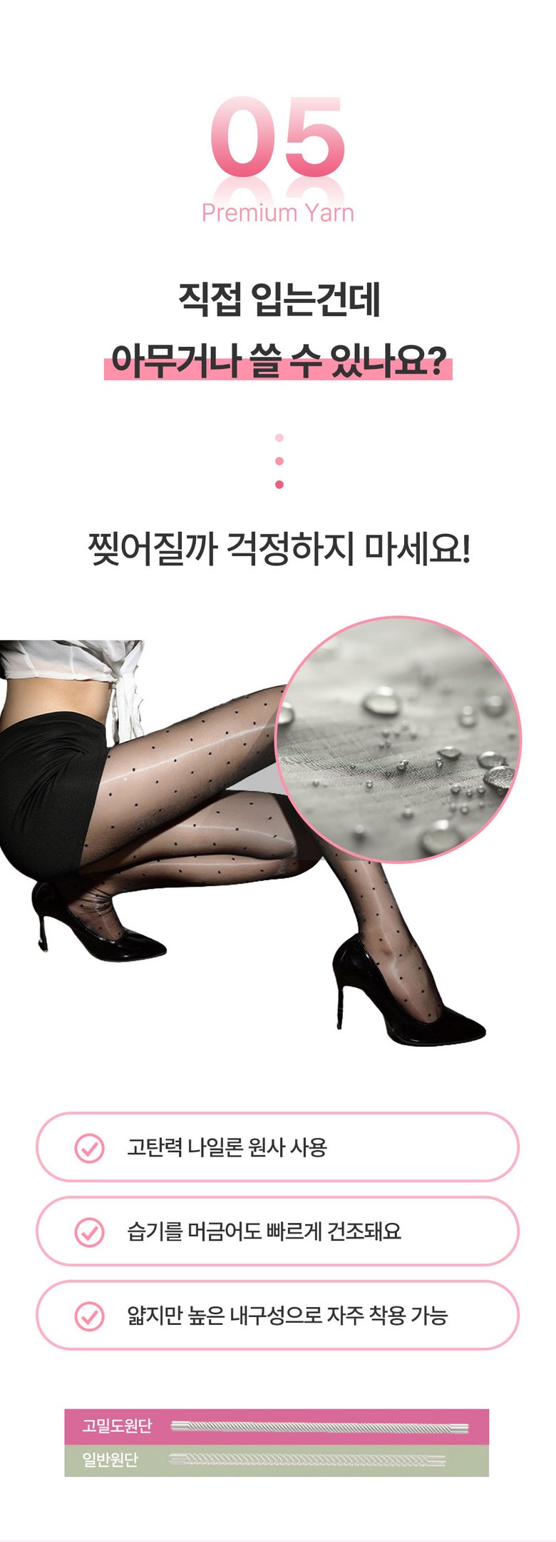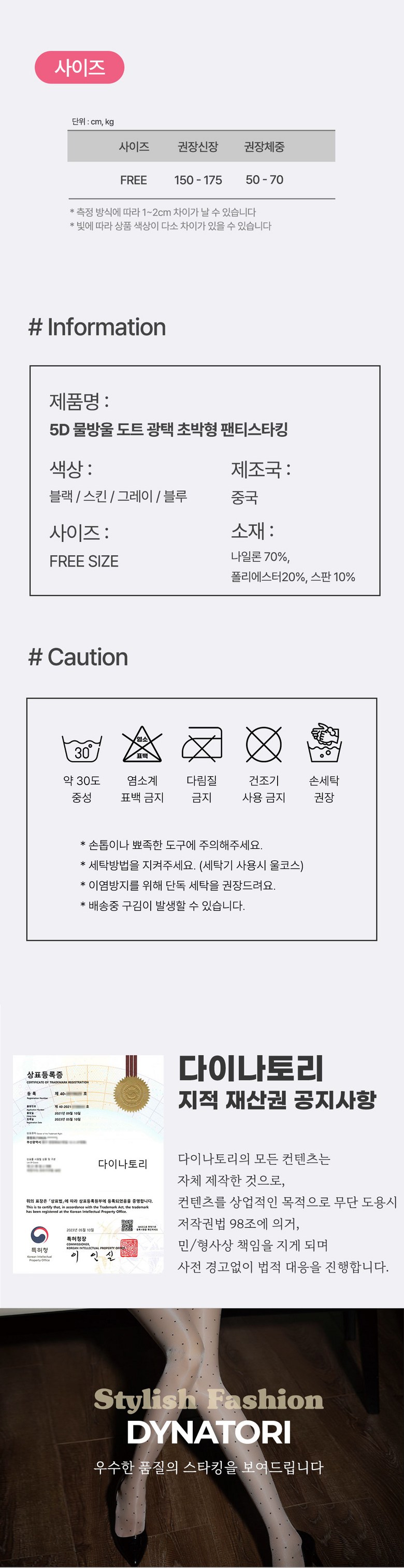 | 종류 | 여성 팬티스타킹 | 소재 | 나일론 70% 폴리에스터 20% 스판 10% |