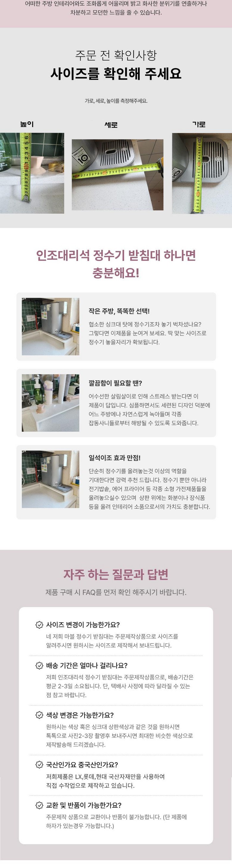 - 상품문의 및 후기게시판을 통해 취소나 환불, 반품 등은 처리되지 않습니다.