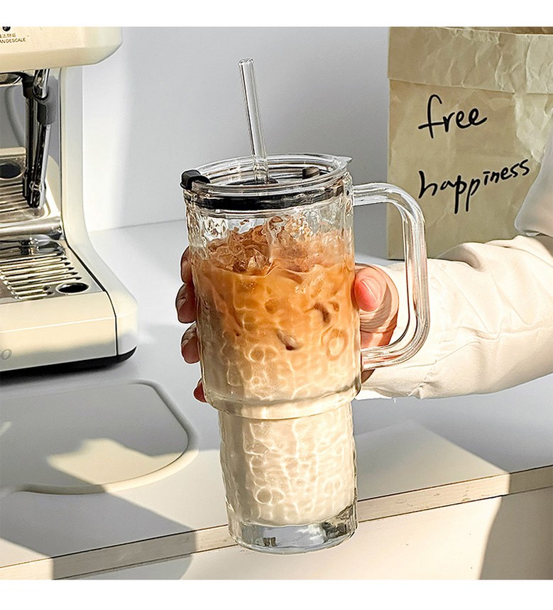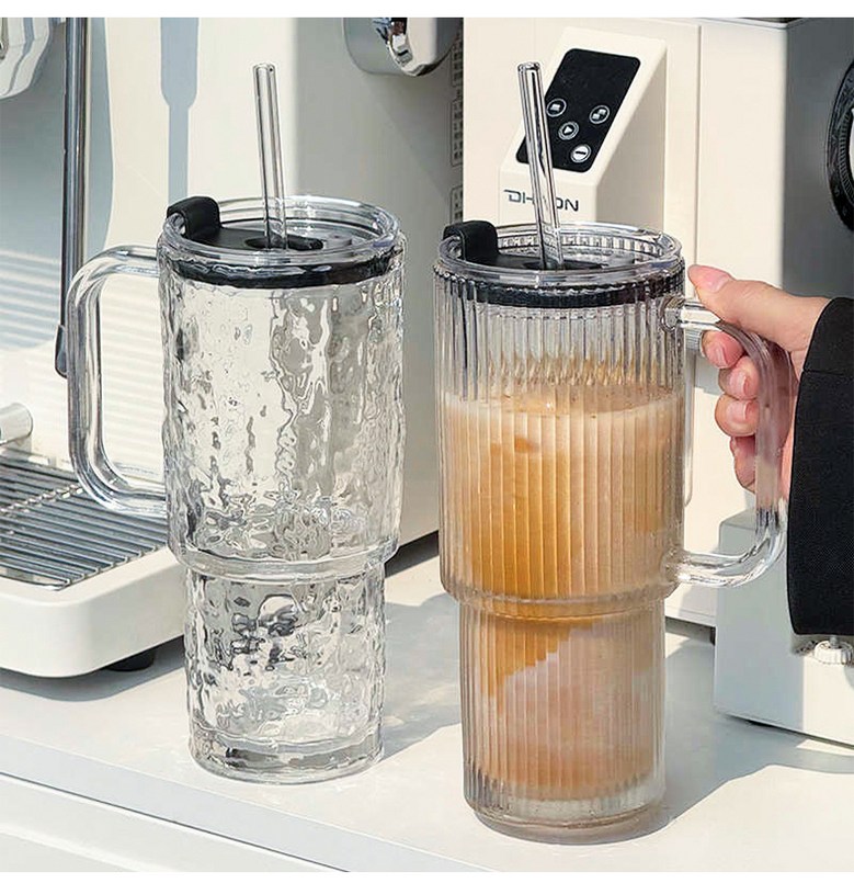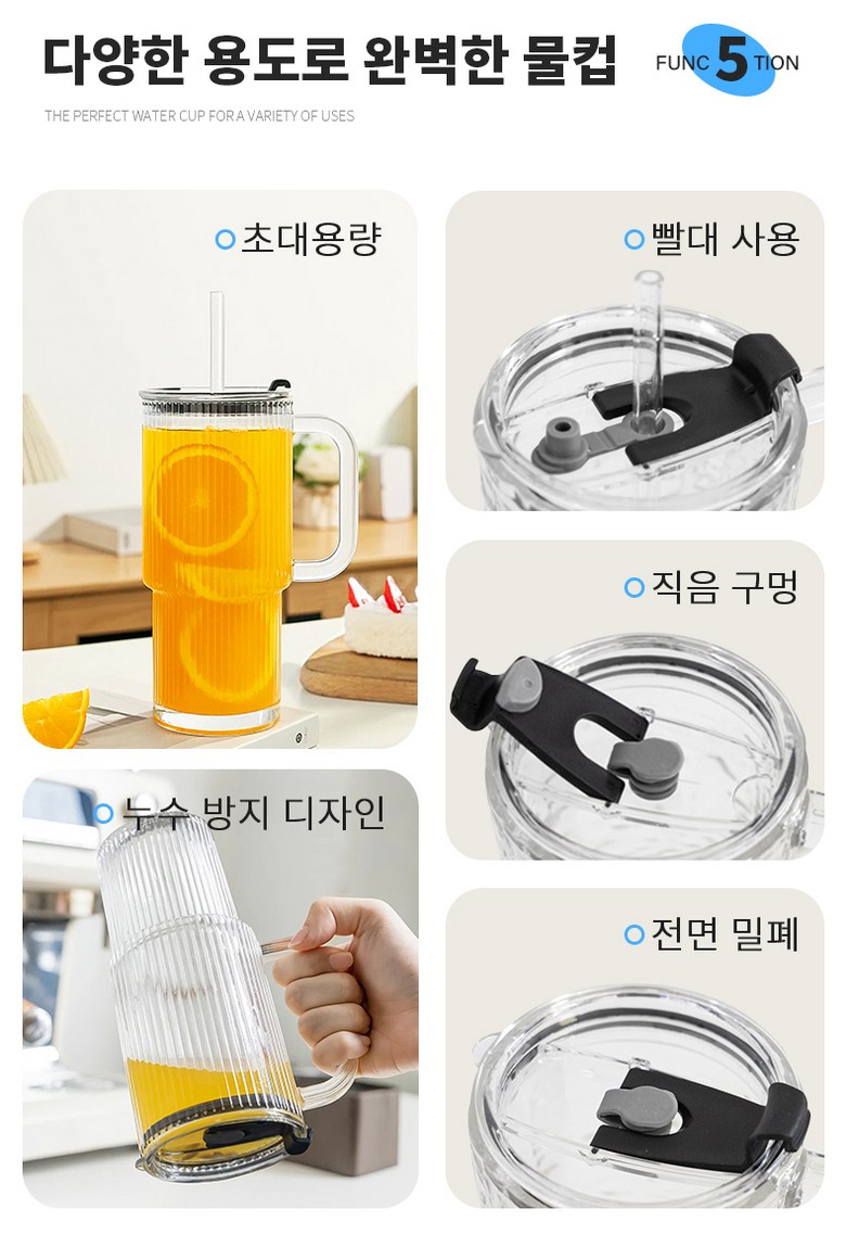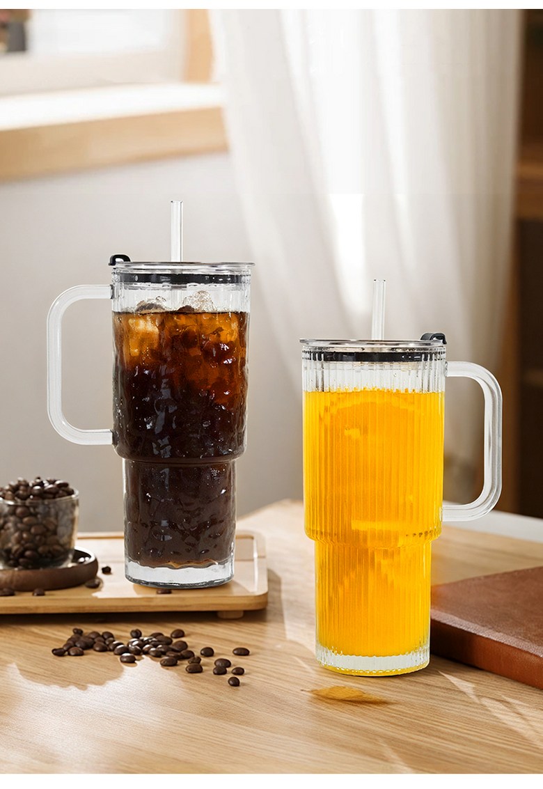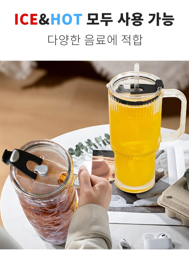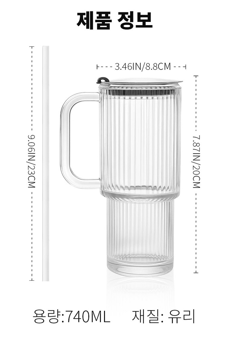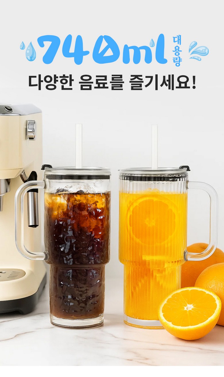 Westlion 대용량 손잡이 뚜껑 빨대 유리컵 750ml
