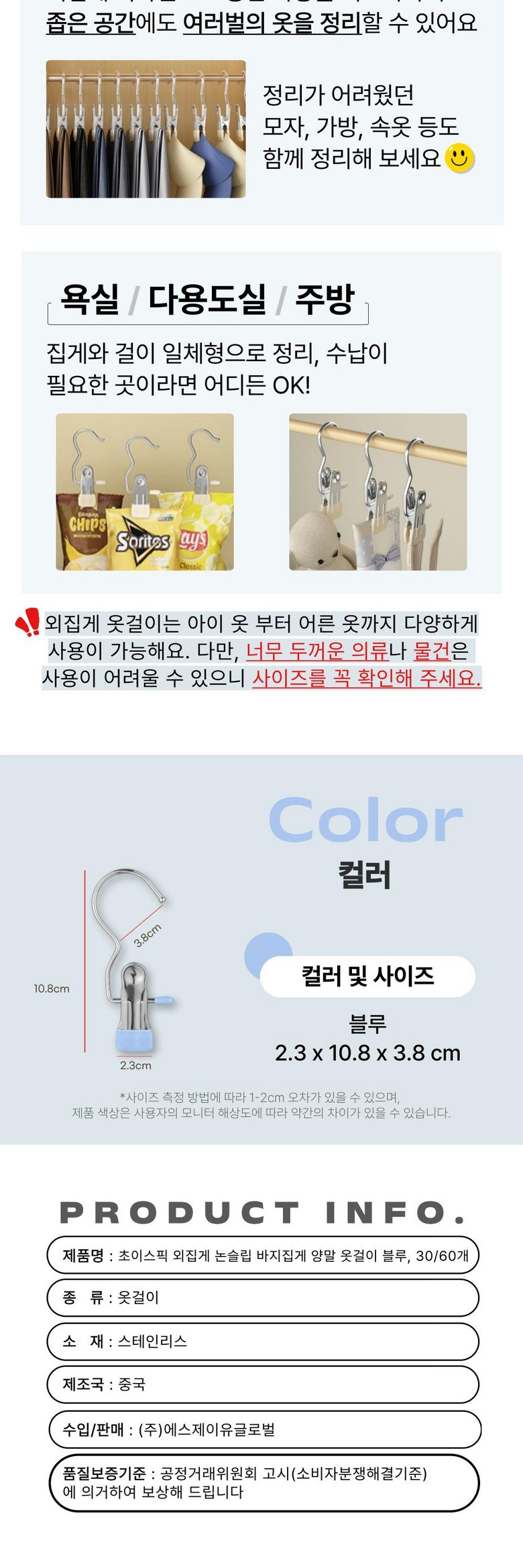 | 품명 및 모델명 | 초이스픽 외집게 논슬립 바지집게 양말 옷걸이 | 인증/허가 사항 | 해당사항 없음 |
